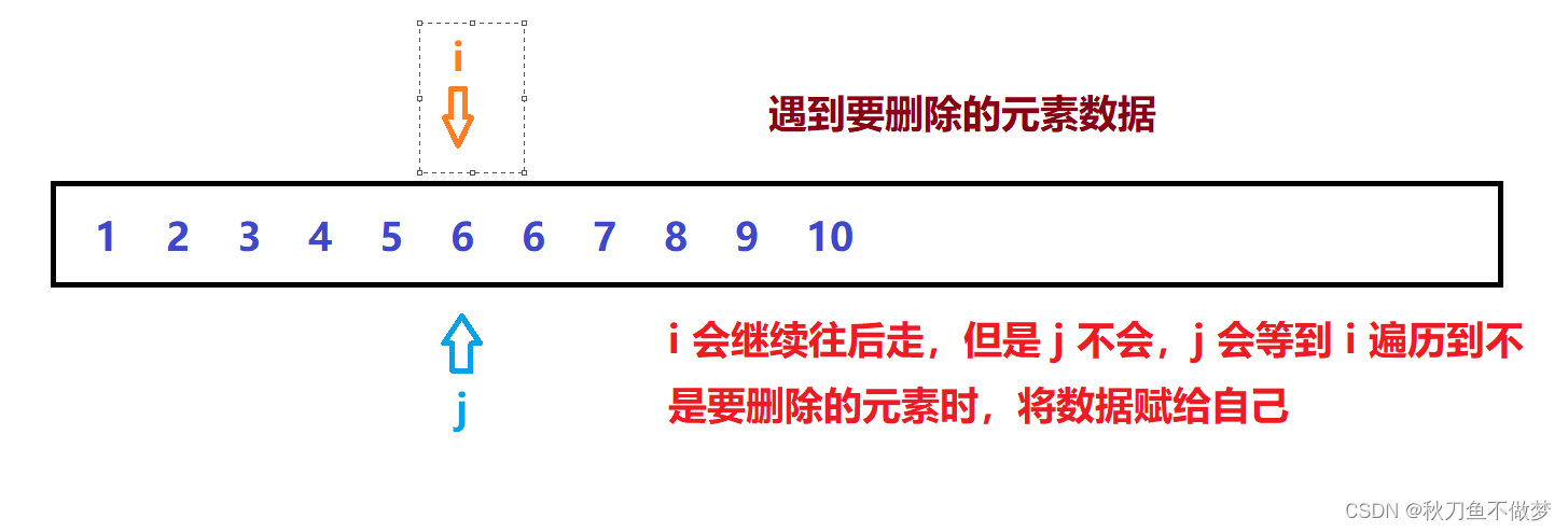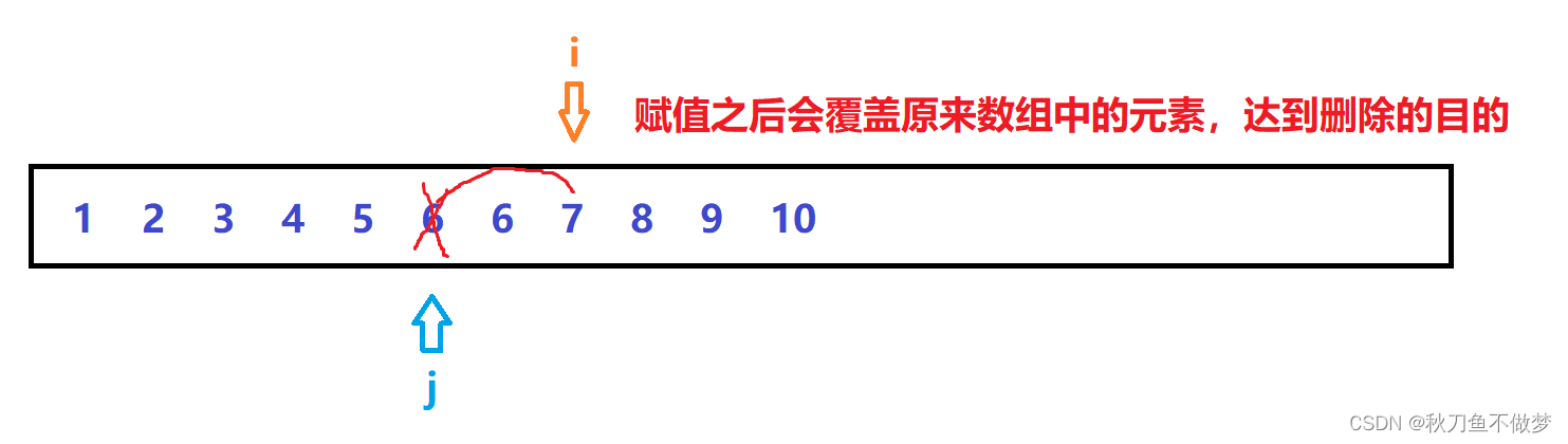 简单来说 i 就是用来遍历整个数组,检查对应索引位置元素是否是目标元素,如果不是赋值给 j 位置,如果是则跳过该位置元素,而 j 在原地等待。