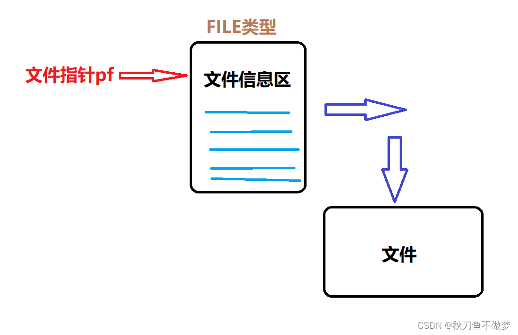 了解了什么是文件信息区之后,我们在讲解一下文件指针,文件指针,顾名思义就是存放文件地址的指针,每当我们打开一个文件的时候,它就会返回文件信息区的指针,这时我们就可以使用文件指针接收它,并通过文件指针间接的操作与它关联的文件。