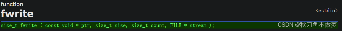其中的各个参数分别为ptr是一个指向数据存储位置的指针;size是每个数据项的大小;count是要写入的数据项数量;stream是要写入的文件指针,该函数的返回值为实际写入的数据项数量。