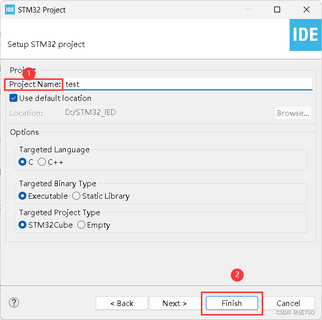 3.点击Next后,进入工程名字输入界面,输入一个合适的工程名字,然后点击Finish。工程创建完毕。
