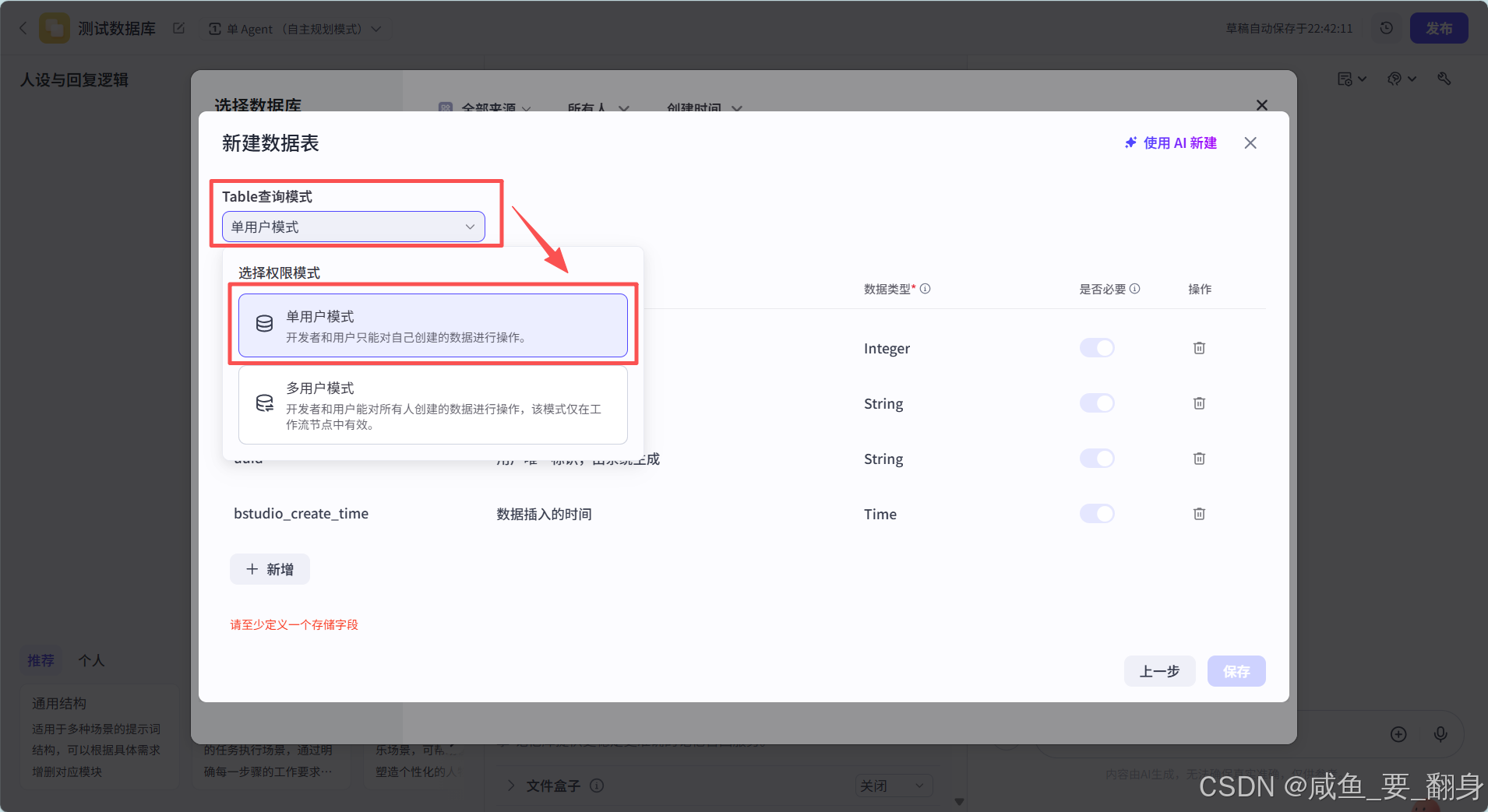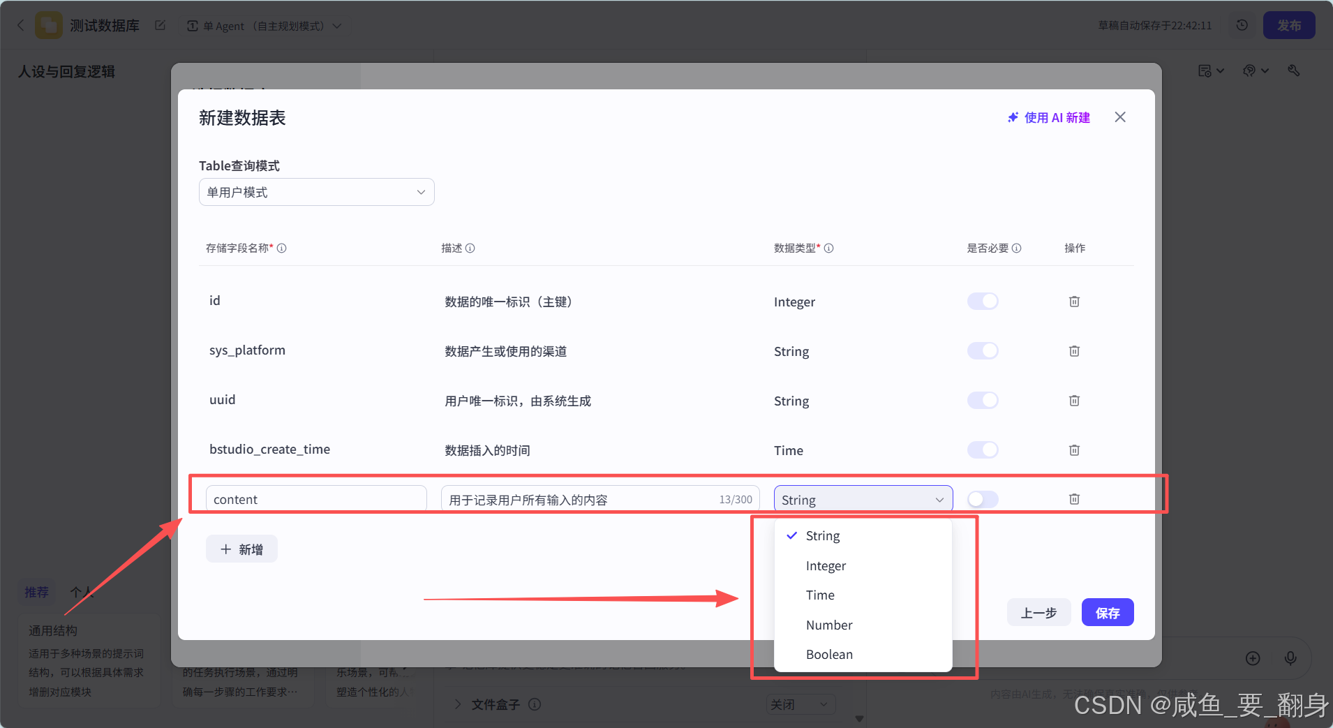 一定要选择上必要这个选项,否则Coze数据库可能不会使用上这个新加入的字段: