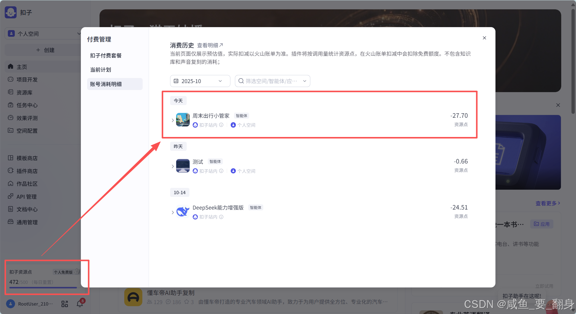 扣资源点型:每次调用插件都会扣除相应的coze资源点,这种收费方式与插件的使用频率直接相关,使用次数越多,扣除的资源点也就越多。
