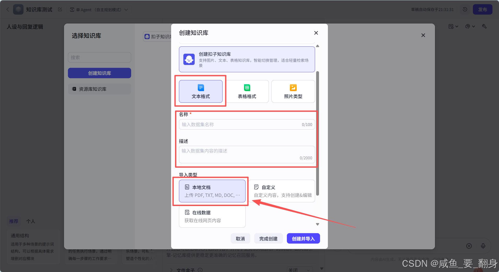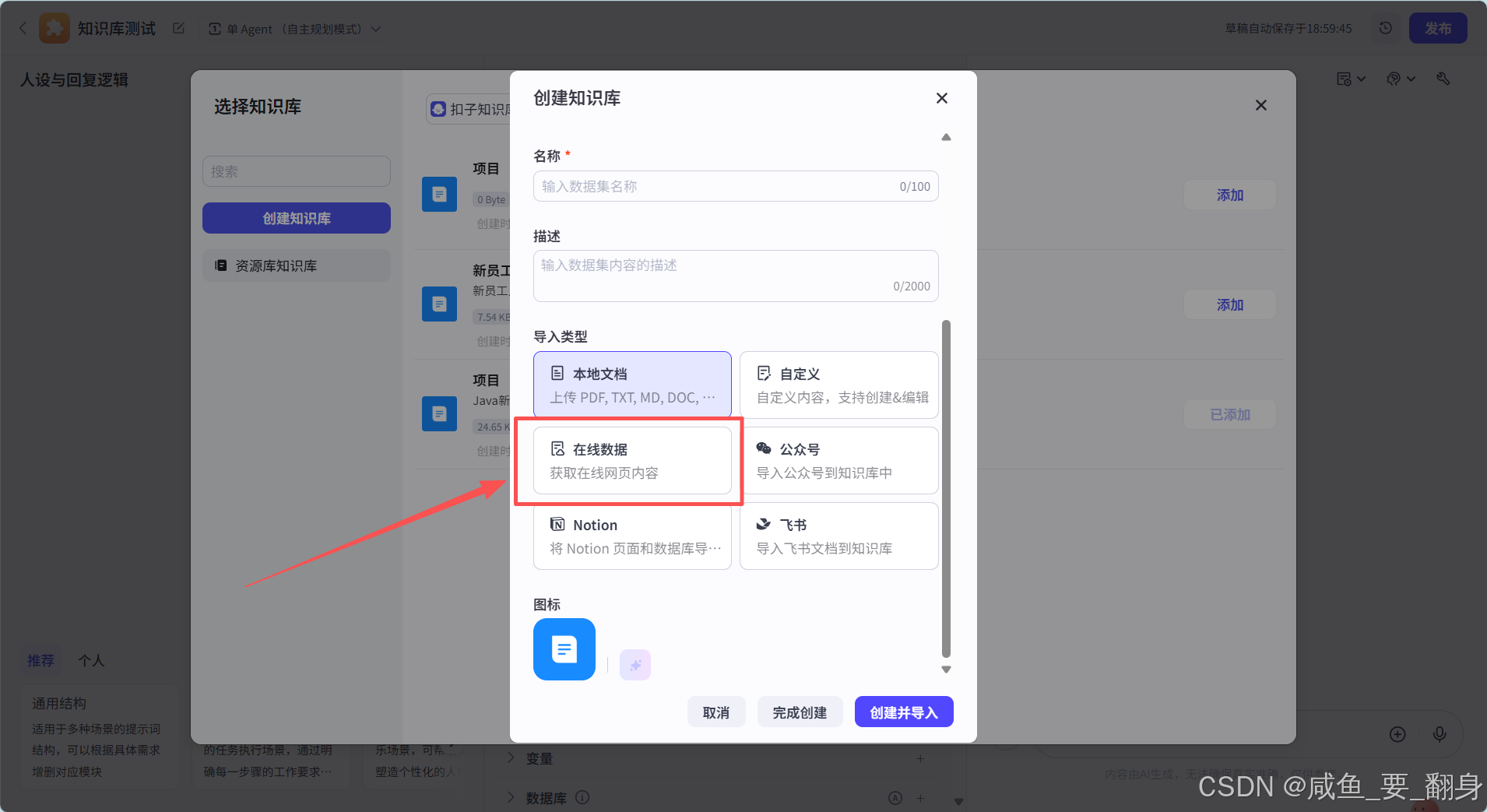 如下,在创建知识库的过程中,用户可以根据实际需求选择不同的数据导入方式: