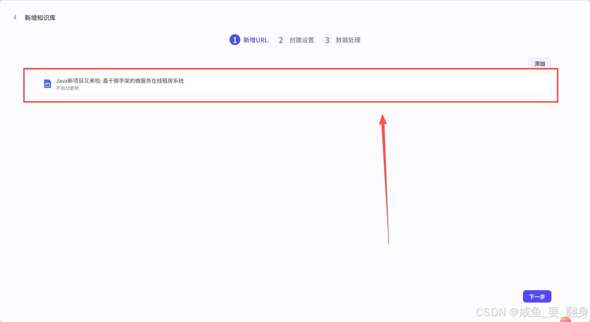 例如下面,对于在线数据,可以针对一个项目,我们作为用户可以导入如Java租房项目(Java新项目又来啦: 基于脚手架的微服务在线租房系统)等相关信息,以丰富知识库内容。我们首先在上面的创建知识库页面中选择导入类型为在线数据: