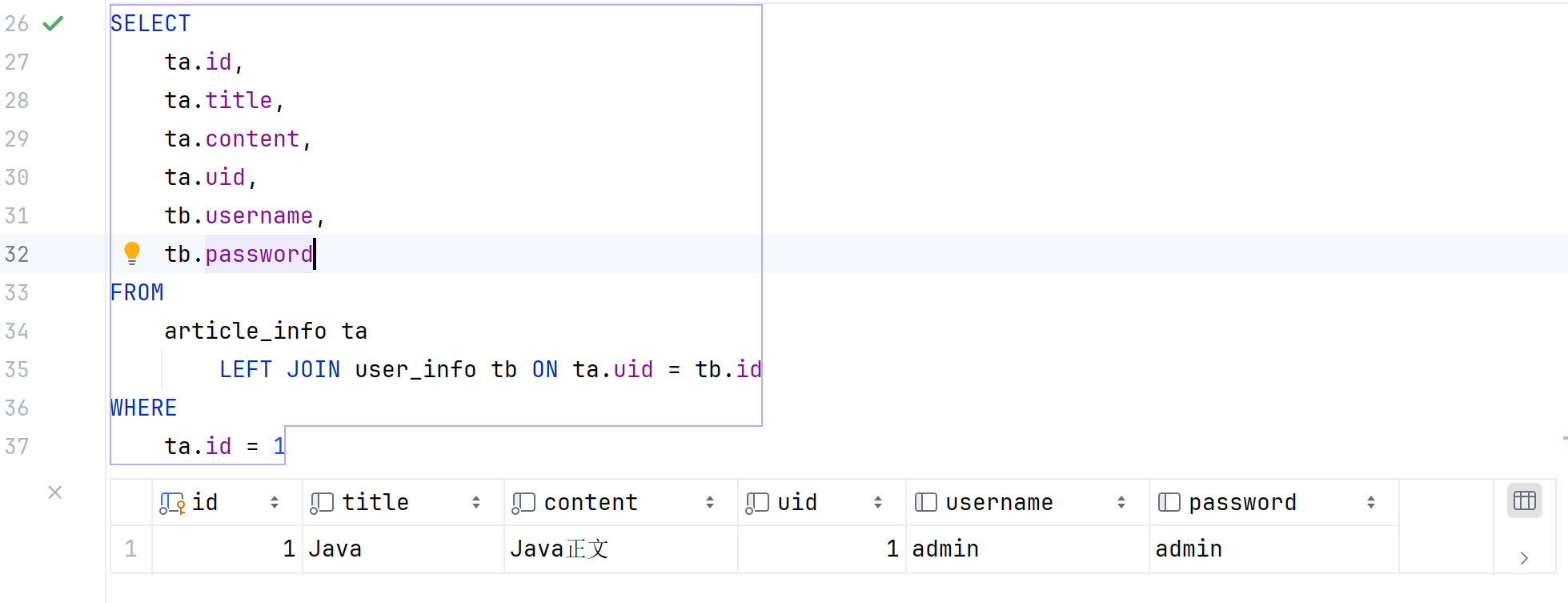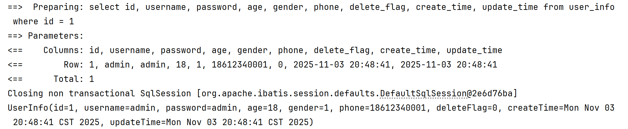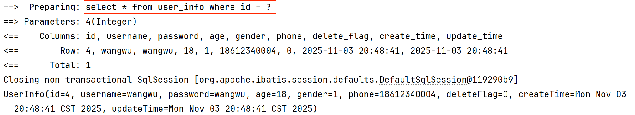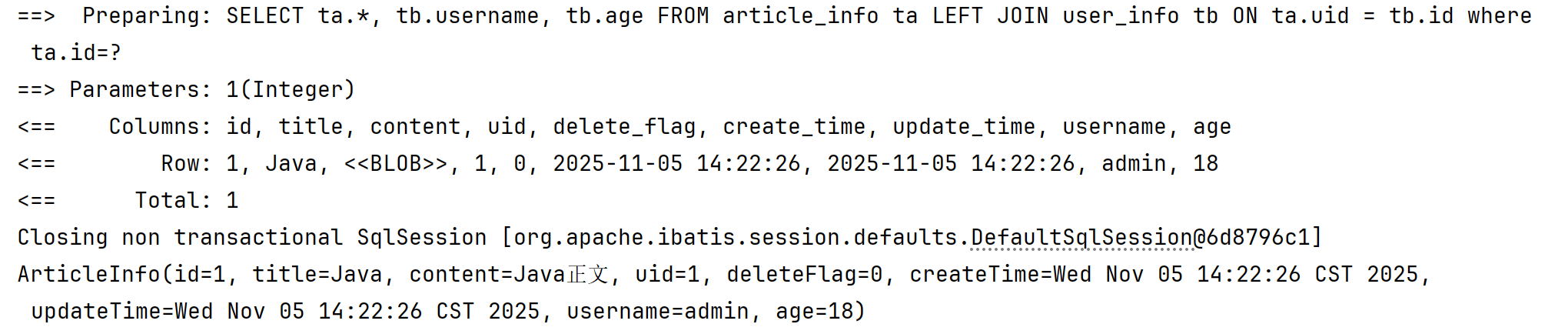 System.out.println(articleInfoMapper.selectArticleInfoById(1));