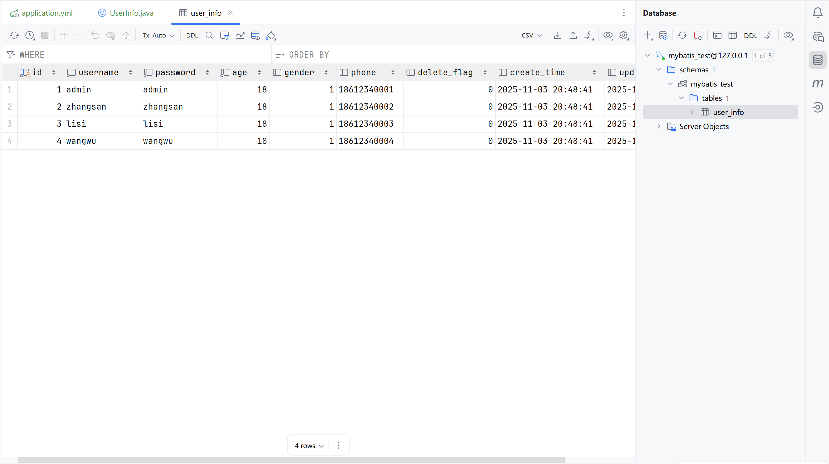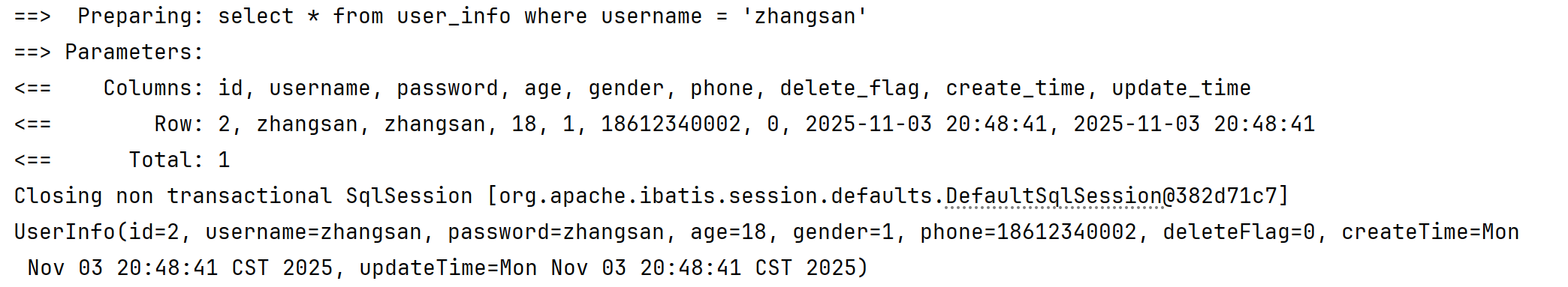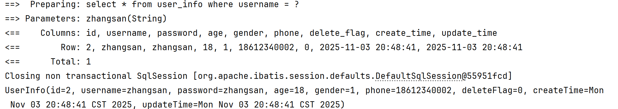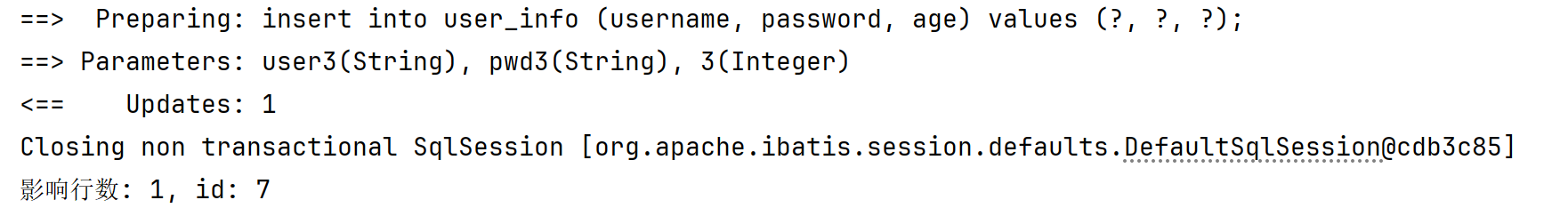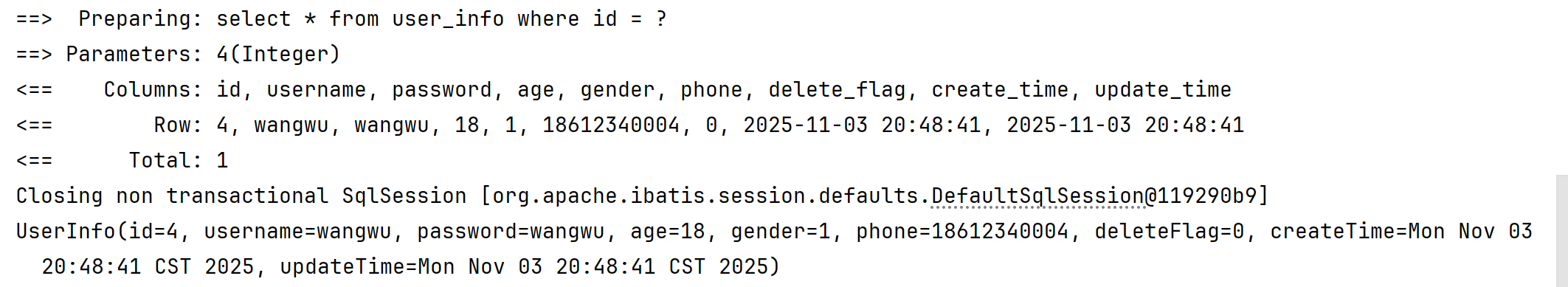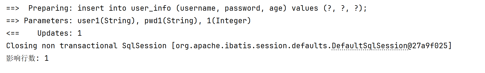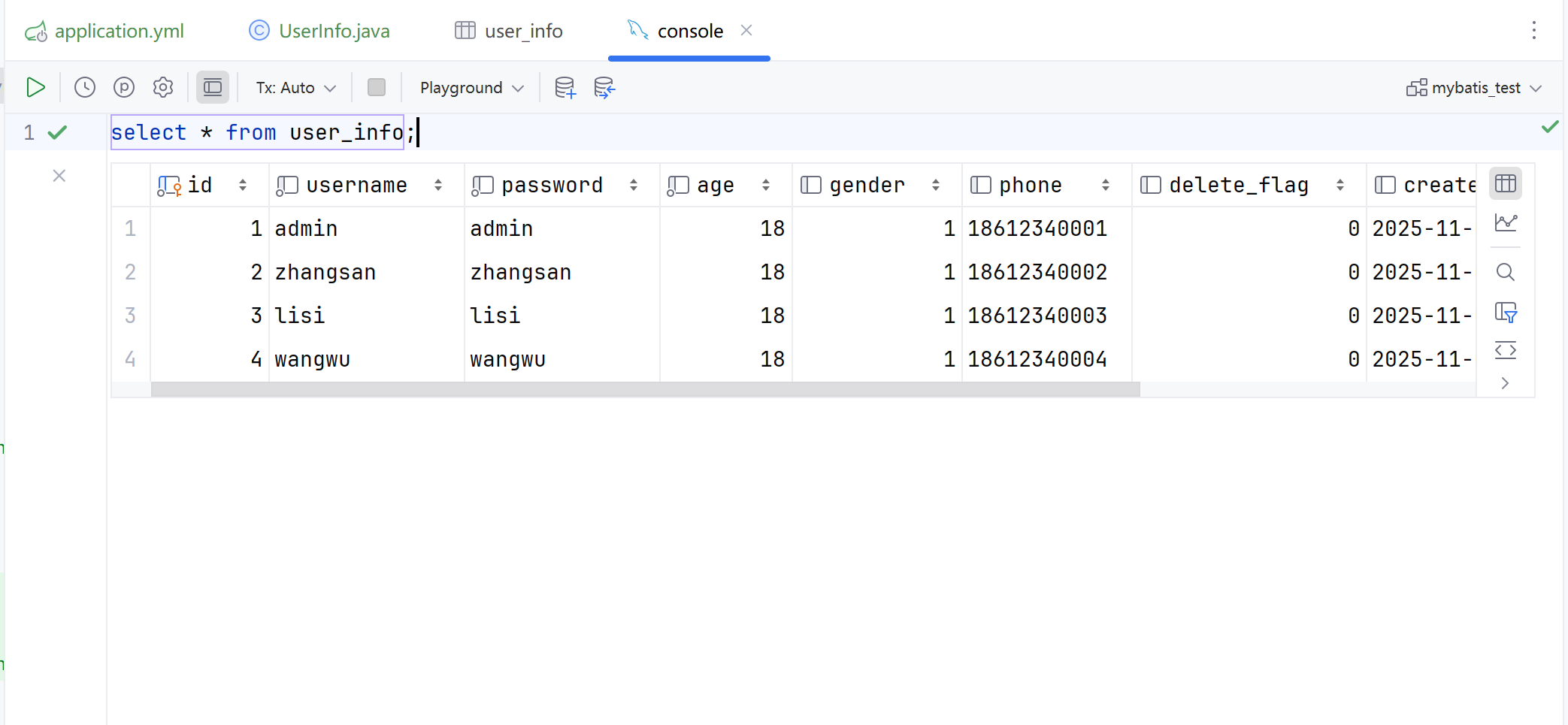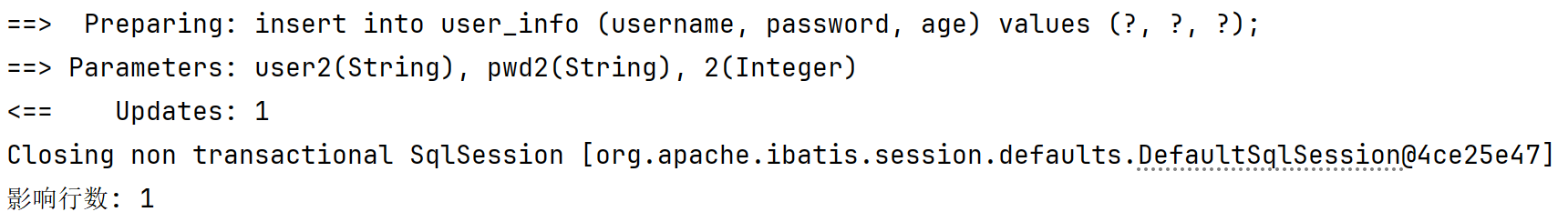 INSERT INTO mybatis_test.user_info( username, `password`, age, gender, phone )