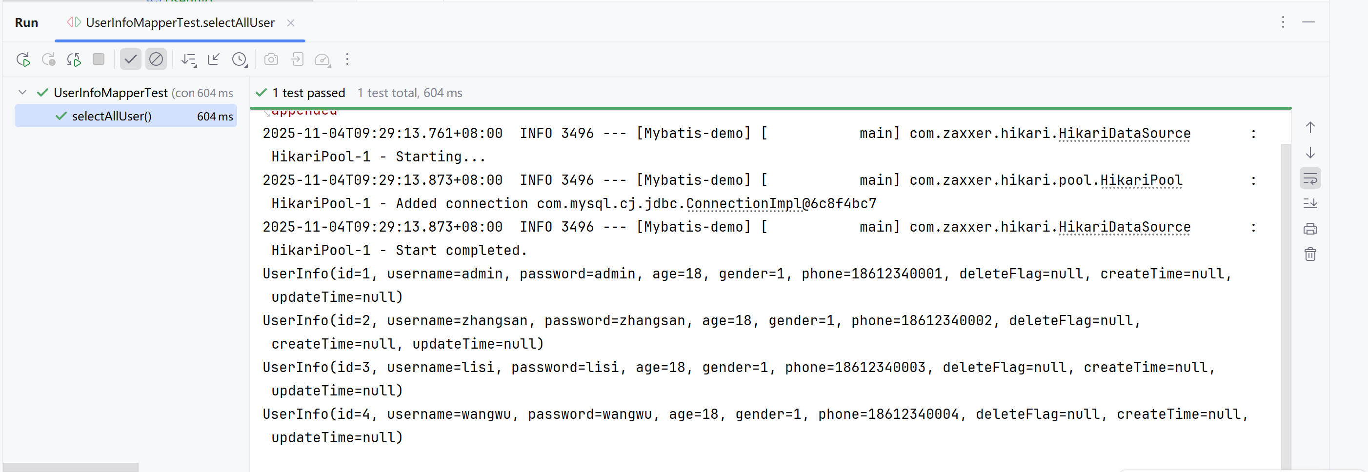 创建用户表和对应的实体类UserInfo: