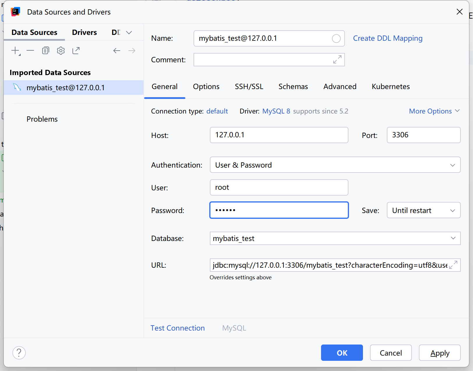 url: jdbc:mysql://127.0.0.1:3306/mybatis_test?characterEncoding=utf8&useSSL=false