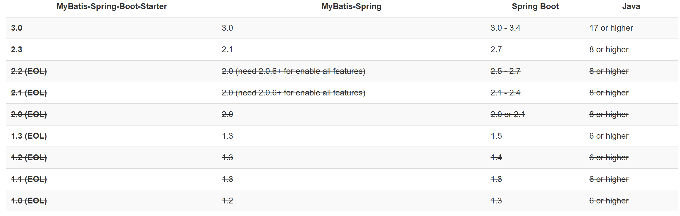 SpringBoot版本和Mybatis版本对应参考:https://mybatis.org/spring-boot-starter/mybatis-spring-boot-autoconfigure/
