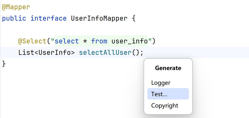 @Select("select * from user_info")