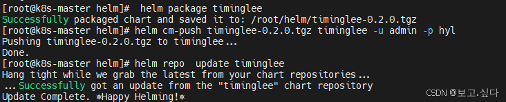 [root@k8s-master helm]# helm cm-push timinglee-0.1.0.tgz timinglee -u admin -p hyl