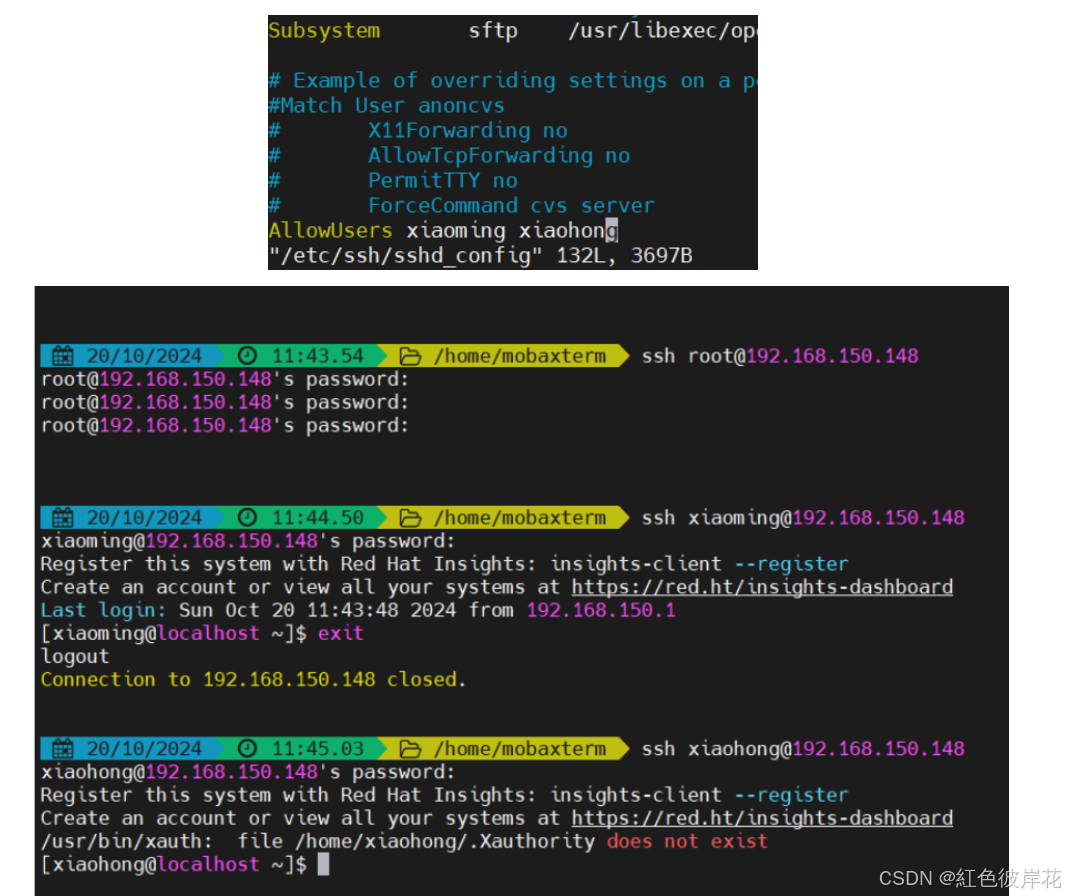 root用户就无法登陆,新添加的xiaoming、xiaohong则可以登陆