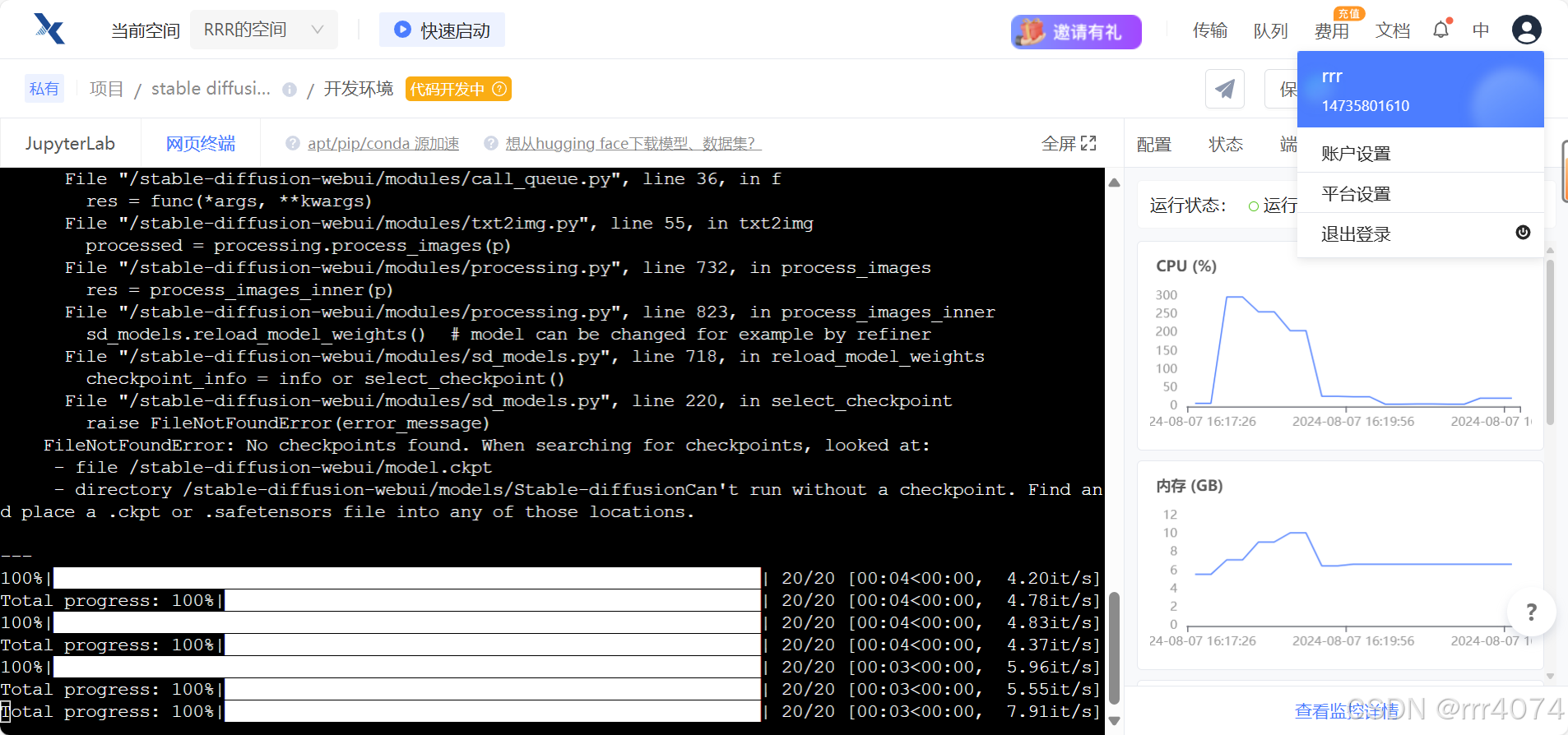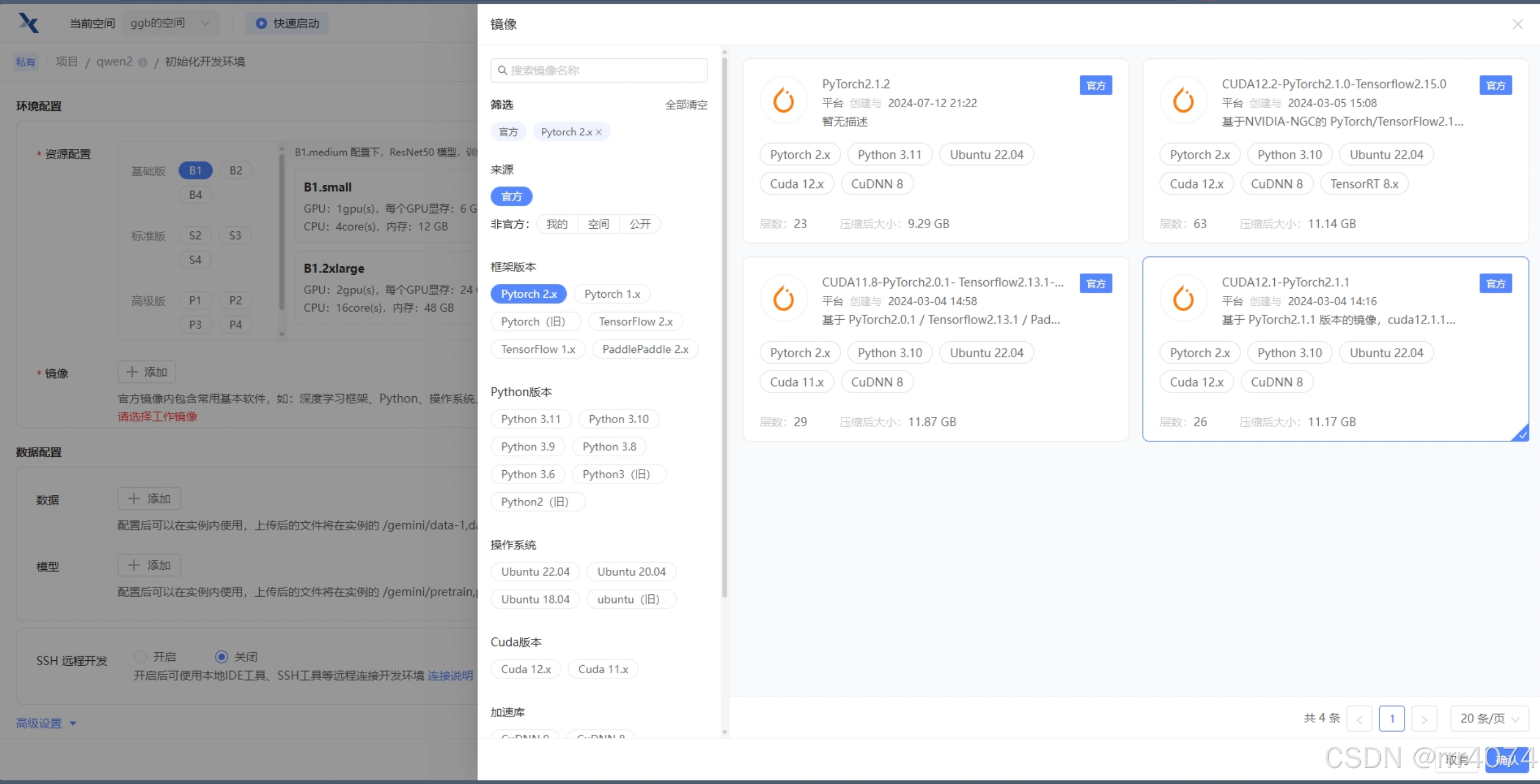 选择CUDA12.1 PyTorch2.1.1的镜像