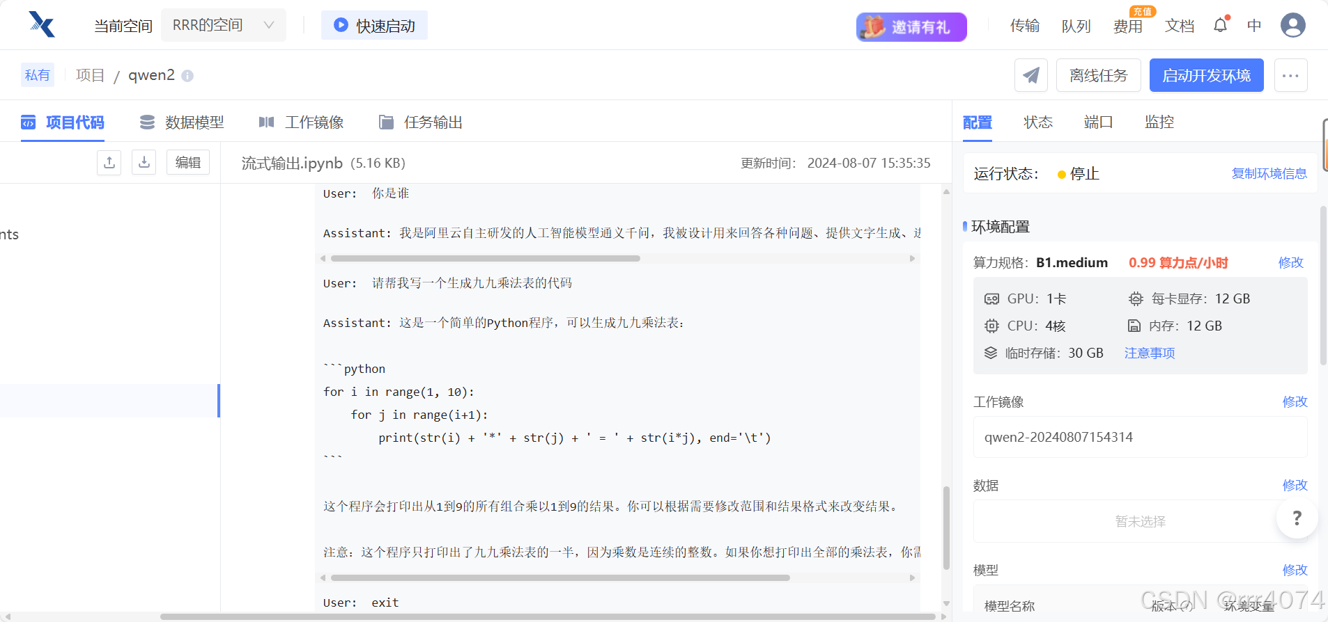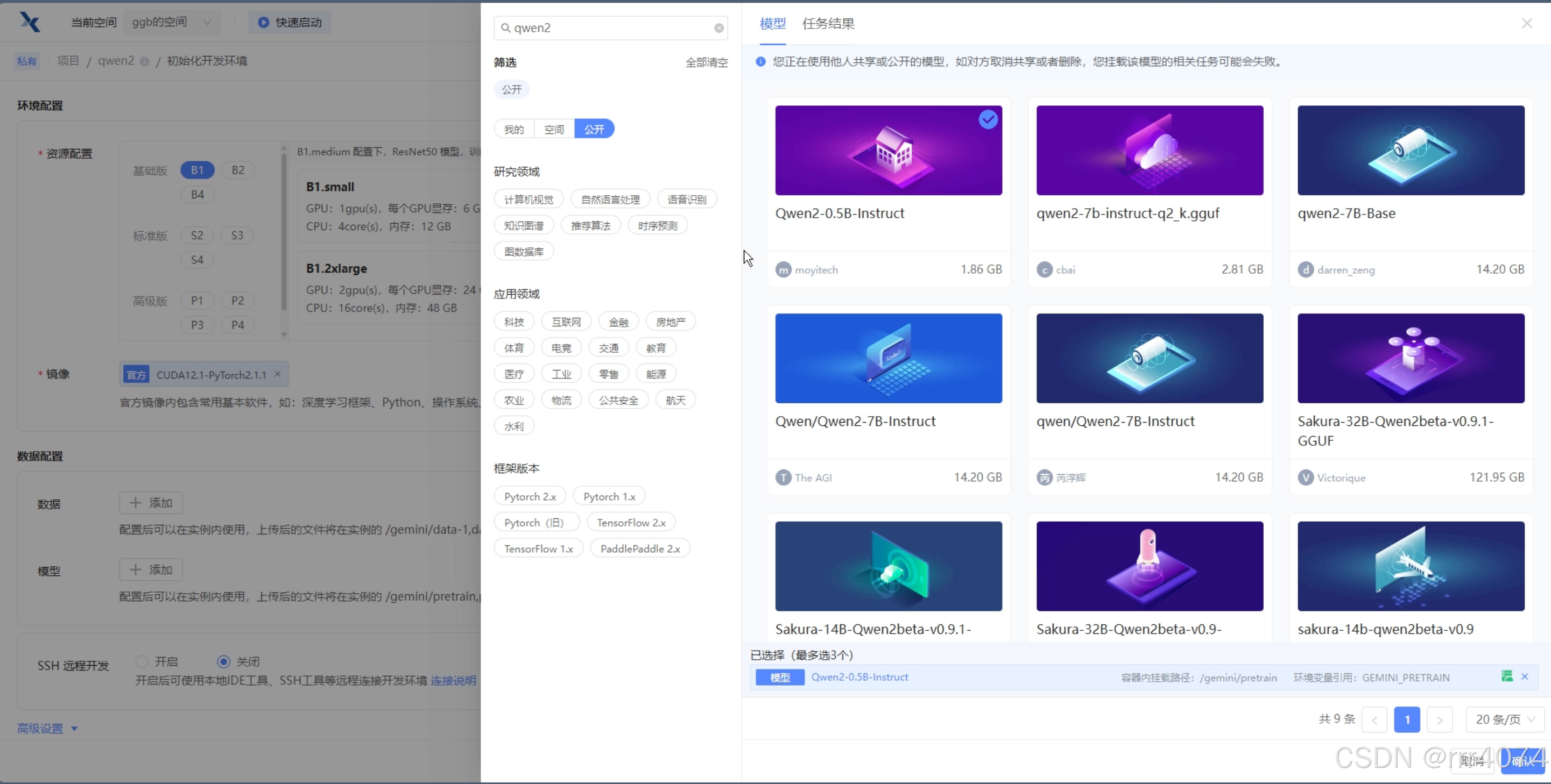 在/gemini/code中存放代码,/gemini/pretrain中是我们刚刚挂载的模型