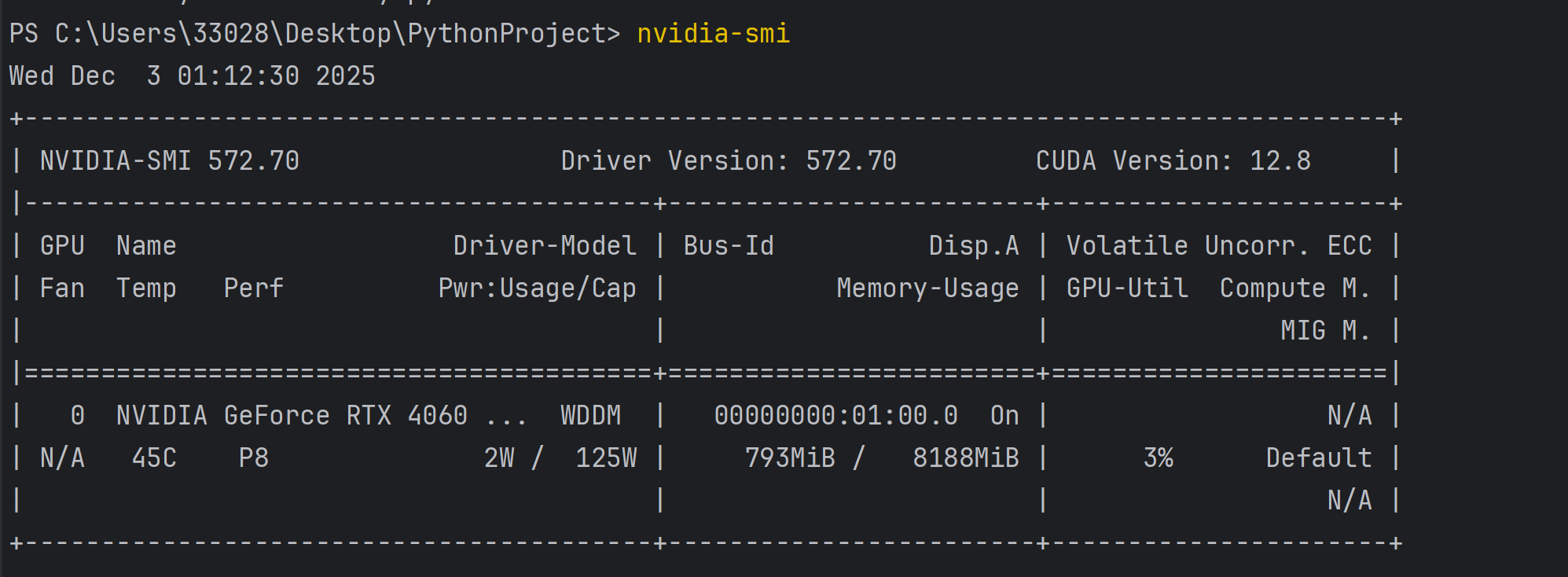 在python终端使用如下的命令,以检查NVIDIA驱动: