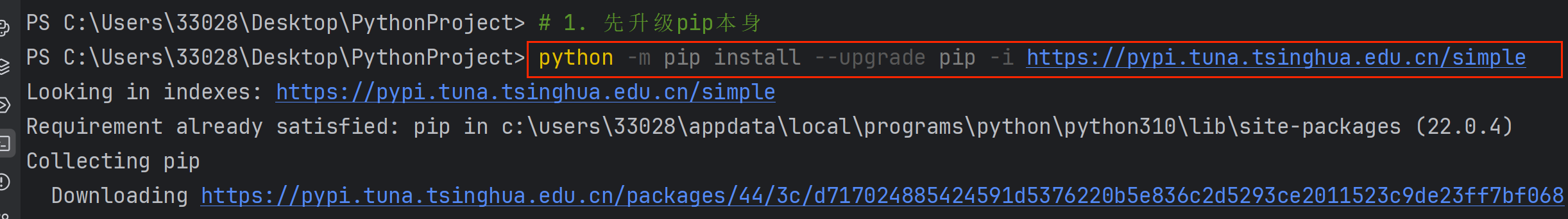 python -m pip install --upgrade pip -i https://pypi.tuna.tsinghua.edu.cn/simple