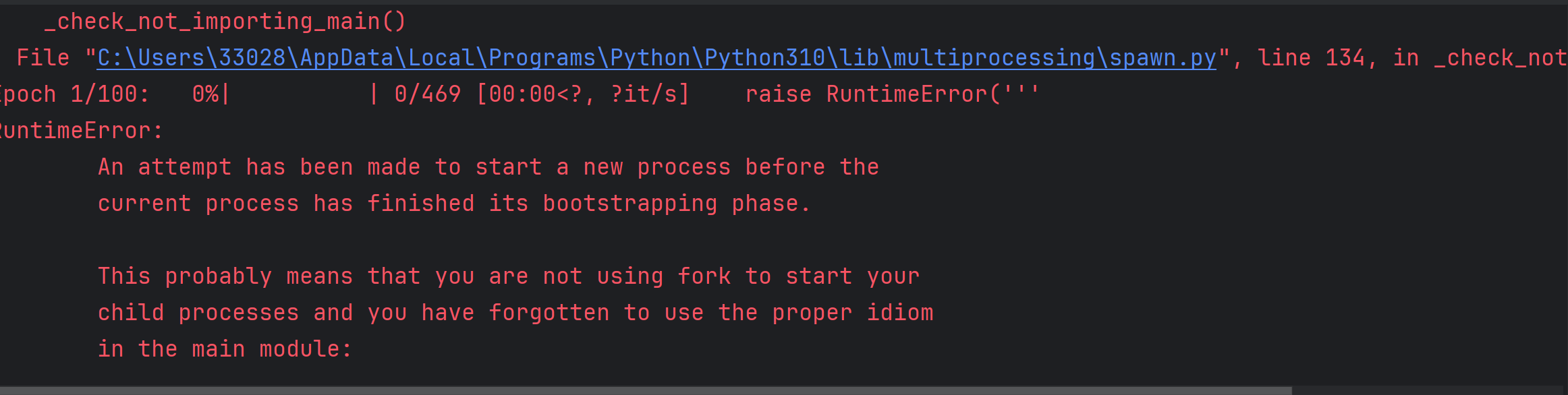 恭喜你,GPU已经成功安装并能识别了!现在的问题是Windows系统下的多进程错误。这是一个常见问题,特别是在Windows上运行PyTorch时。别担心,我们来解决它!
