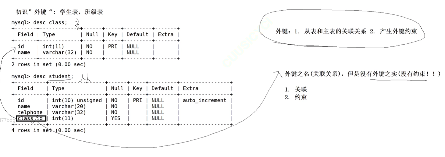 外键用于定义主表和从表之间的关系:外键约束主要定义在从表上,主表则必须是有主键约束或unique约束。当定义外键后,要求外键列数据必须在主表的主键列存在或为null。