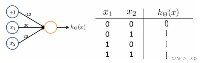 我们可以用这样的一个神经网络表示AND 函数: