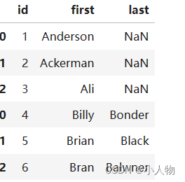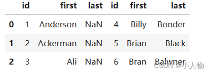 dataframe_b=pd.DataFrame(data_b,columns=['id','first','last'])