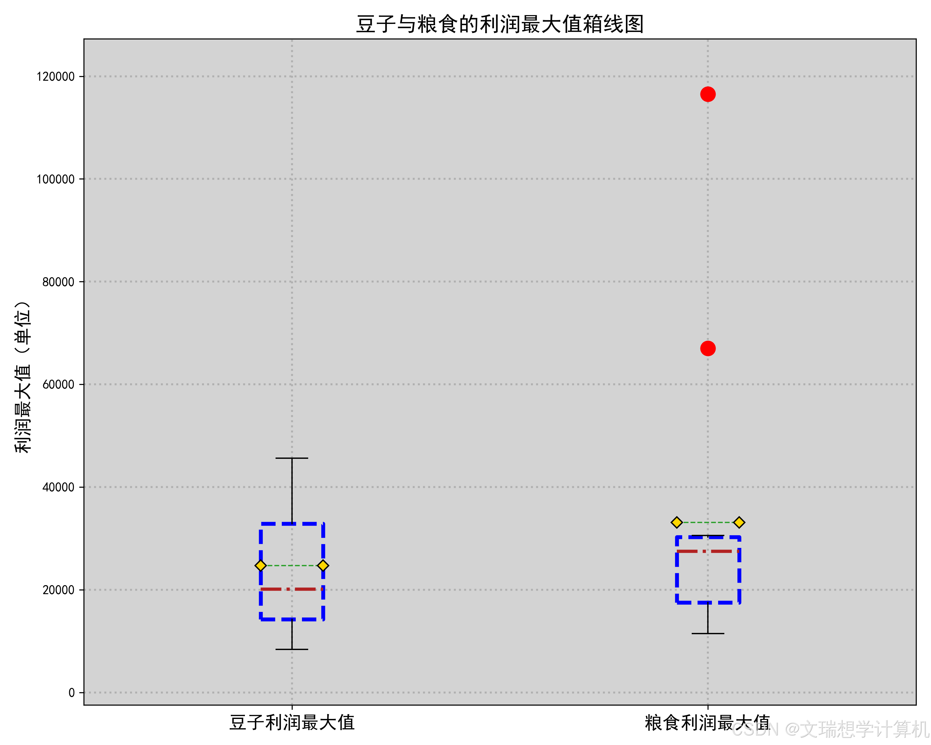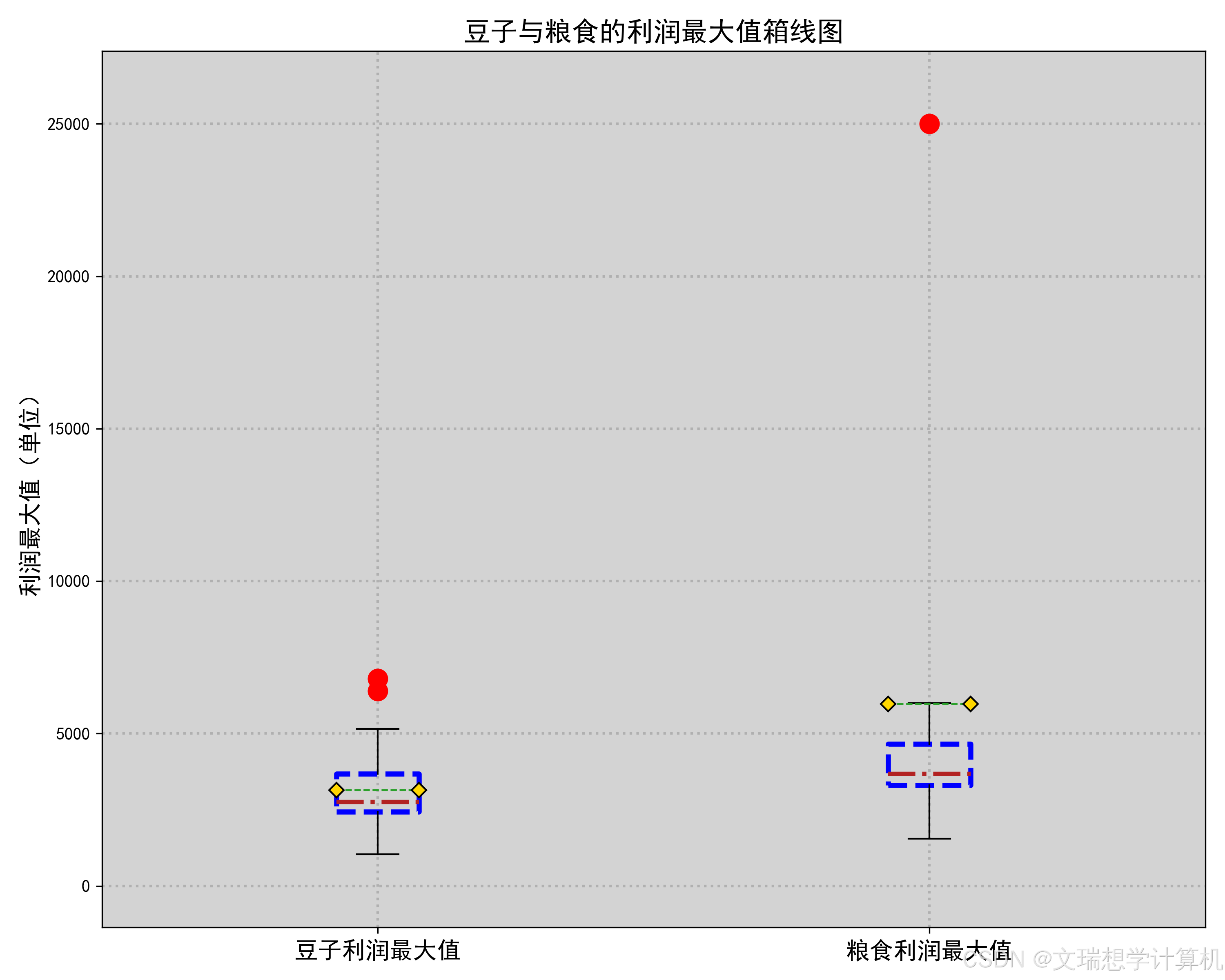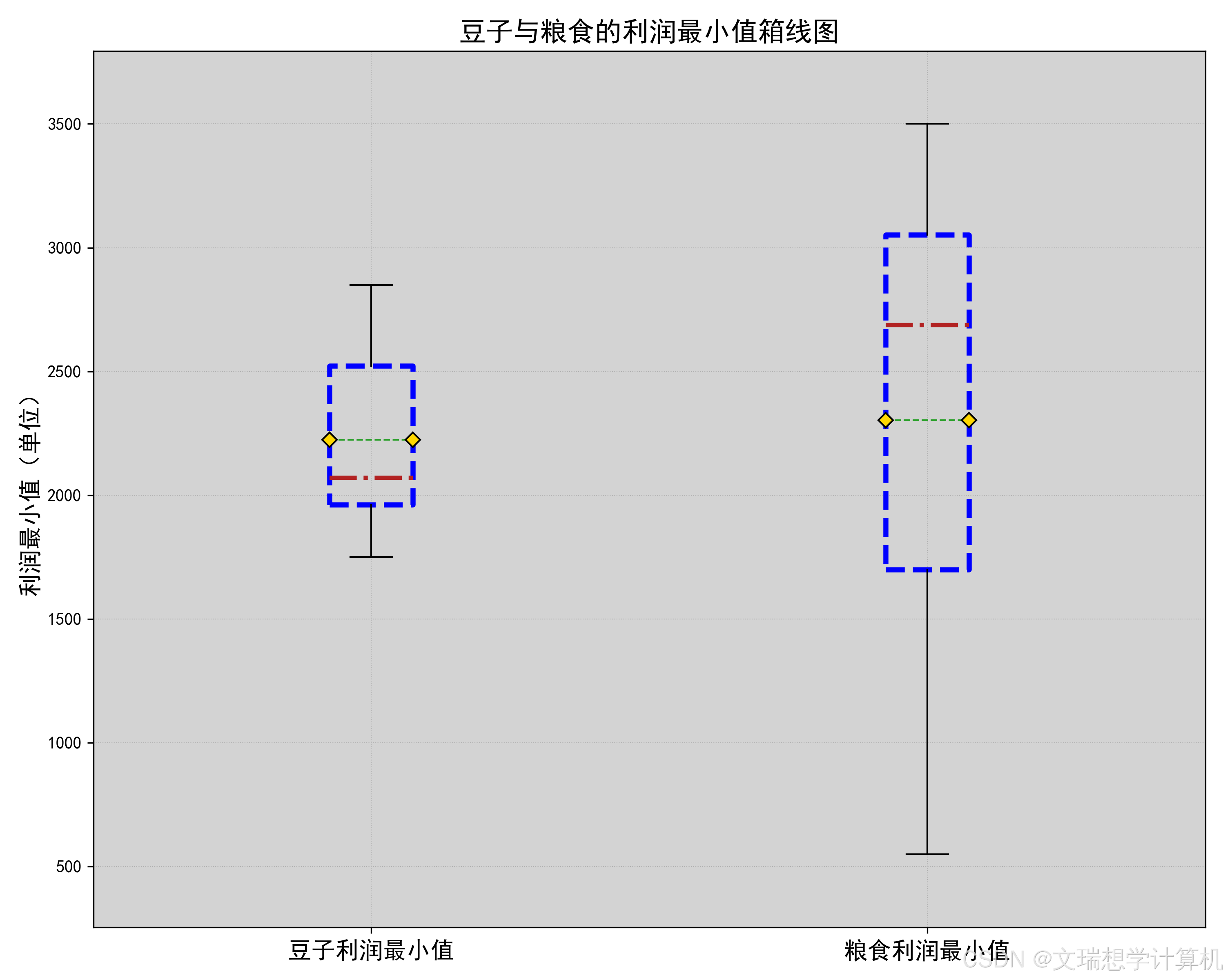 \newline由于我们希望种植作物收益最大化,因此我们对于粮食,蔬菜与豆类的经济因素分别进行了考量。我们先计算出了每种作物的亩净产值,然后将作物分为豆类,粮食与蔬菜三类分别进行了比较,箱线图如下(部分放于附件),
