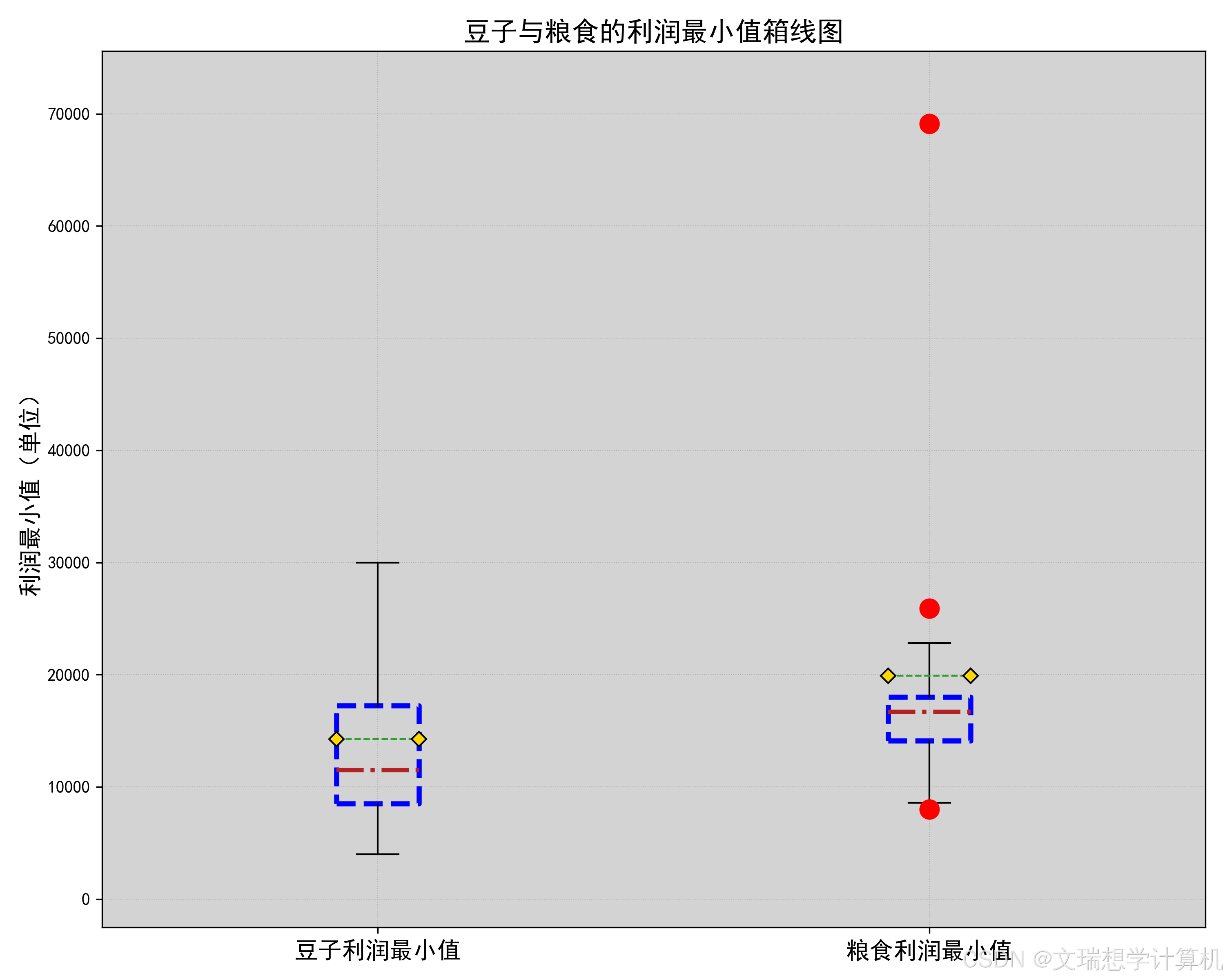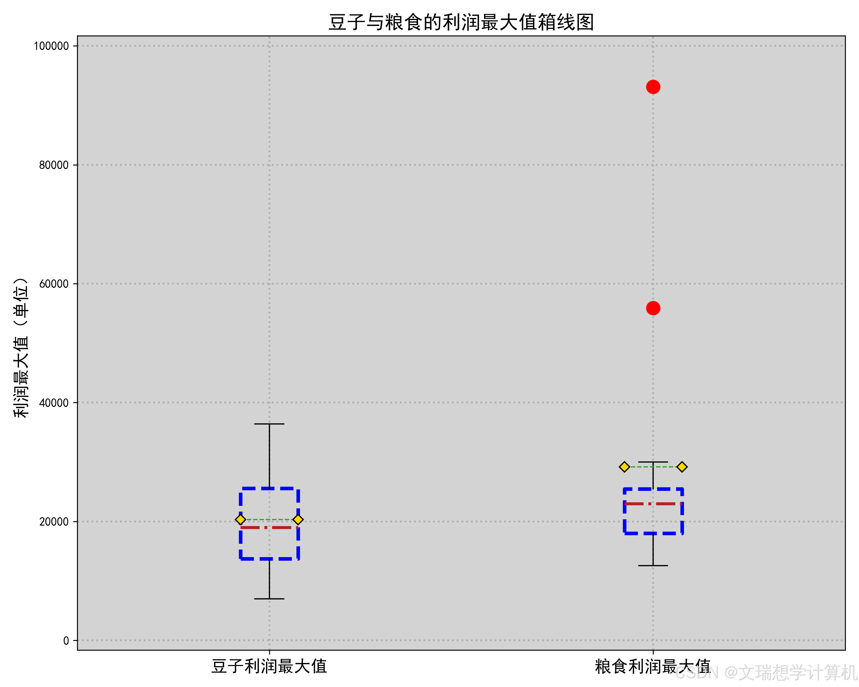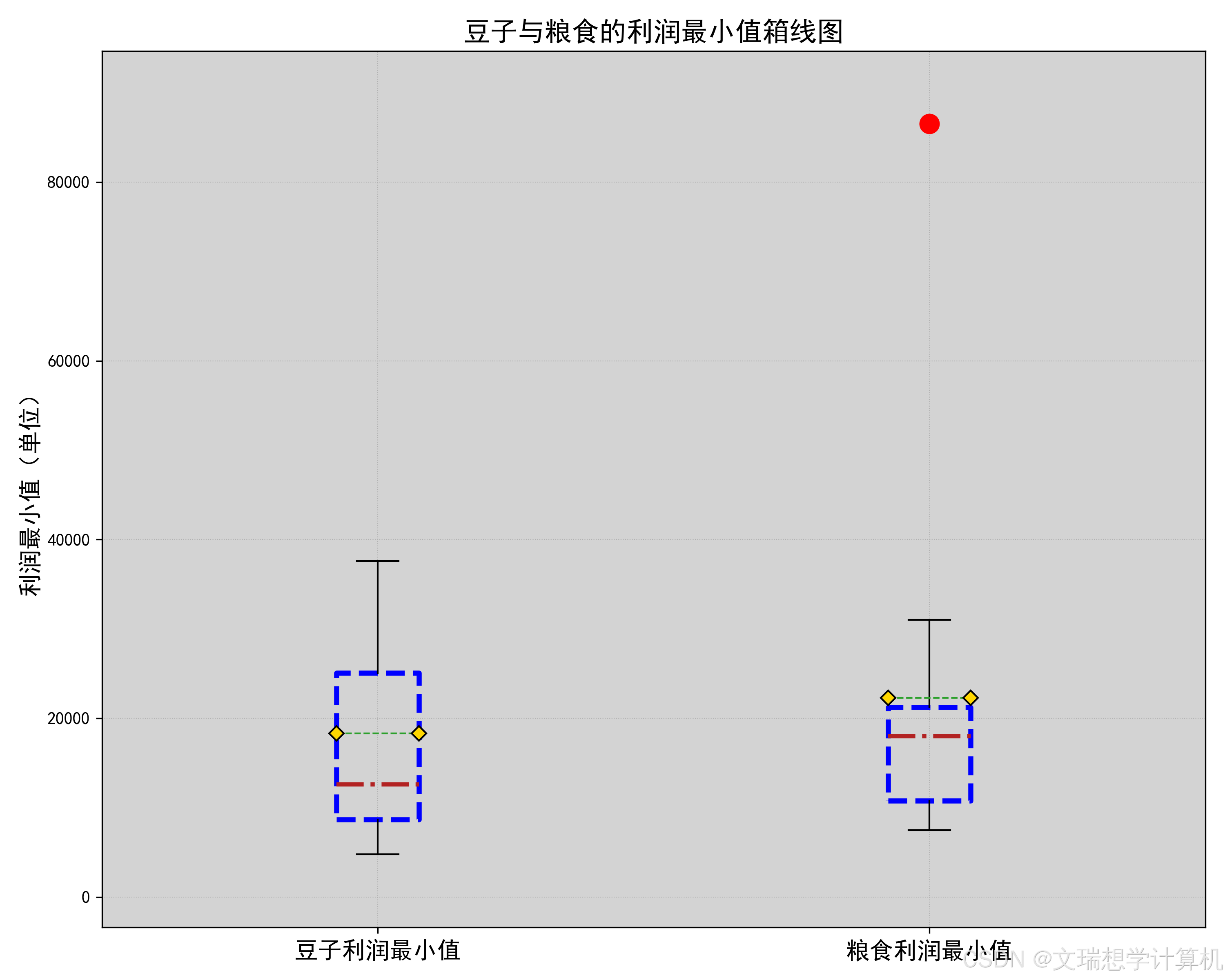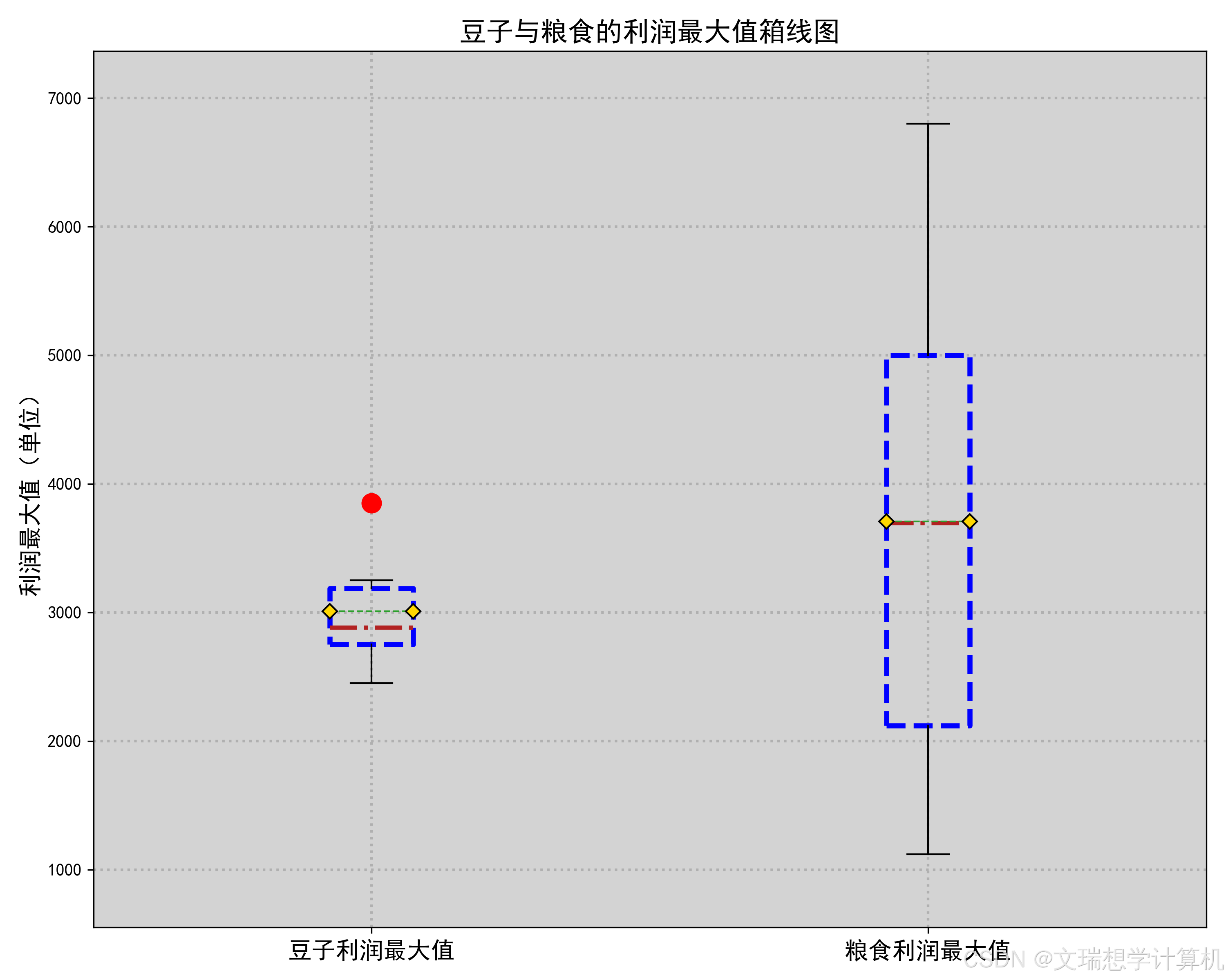 \newline由于我们希望种植作物收益最大化,因此我们对于粮食,蔬菜与豆类的经济因素分别进行了考量。我们先计算出了每种作物的亩净产值,然后将作物分为豆类,粮食与蔬菜三类分别进行了比较,箱线图如下(部分放于附件),