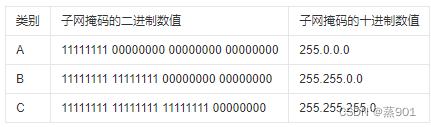 3、C类:(192.0.1.0-223.255.255.0)(子网掩码:255.255.255.0或 0xFFFFFF00)