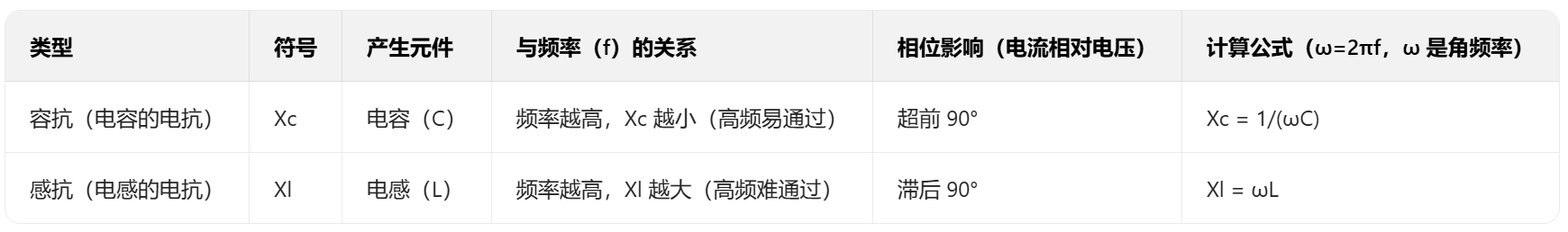 - 此时电流与电压不再 “同相位”(比如电容电流会 “跑在” 电压前面,电感电流会 “落后” 电压),普通电阻无法描述这种 “阻碍 + 相位差” 的综合效果。