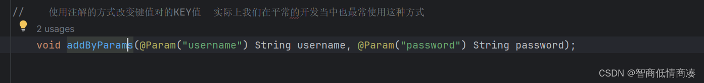 这这里, 我们所写的注解就相当于是我们自己设置了对应的KEY值, 在将其以MAP集合的形式保存后, 我们就可以使用这个注解获取对应的参数了