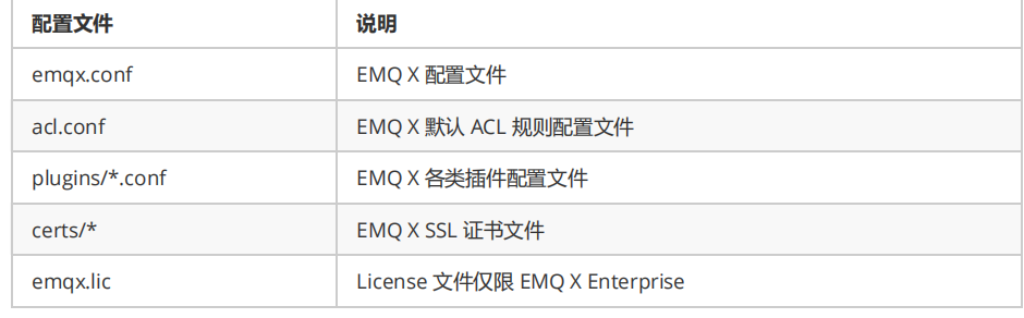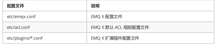 EMQ X 通过 etc 目录下配置文件进行设置,主要配置文件包括:
