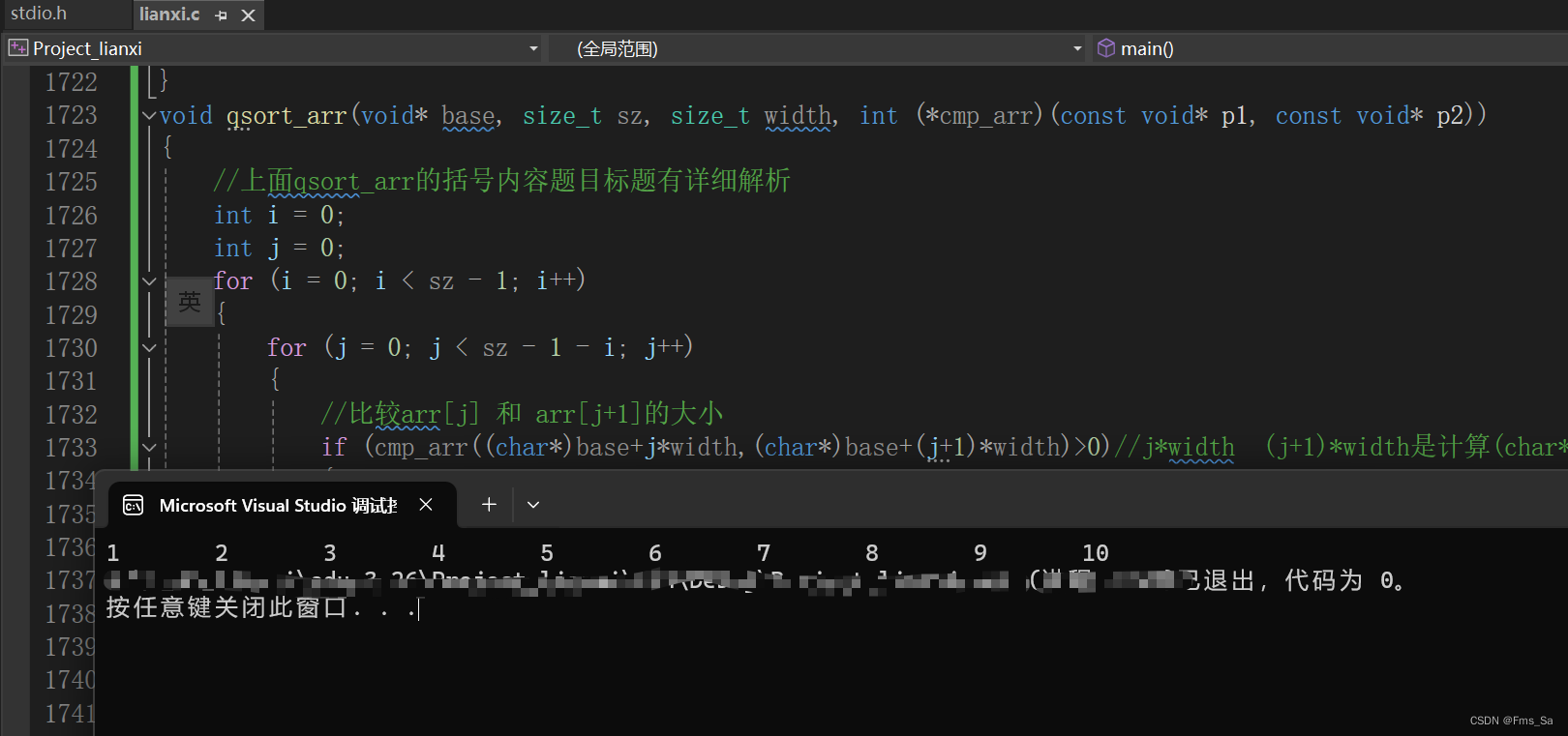 qsort_arr(arr, sz, sizeof(arr[0]), cmp_arr);//模拟实现qsort的代码