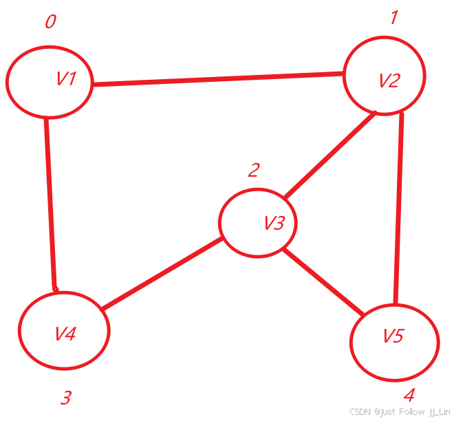 // 在邻接矩阵中,G->matrix[v][i] 表示的是顶点 v 和顶点 i 之间是否存在边