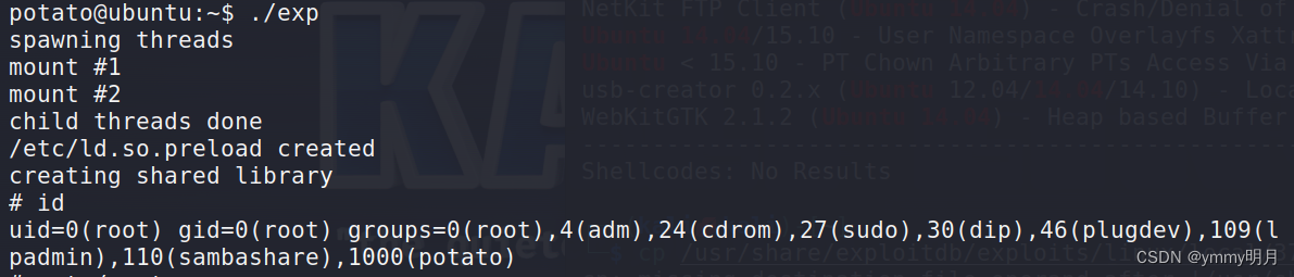 在kali里再打开一个终端,搜一下ubuntu 14.04版本的漏洞