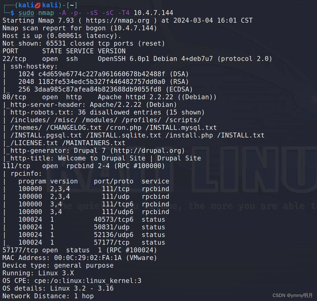 这边可以看到靶机的22 80 111和51771端口是开放的