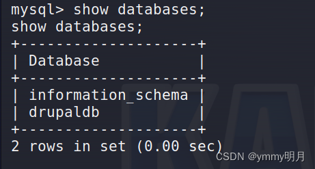 还有一个名为drupaldb的数据库,然后我们登录一下这个数据库,查看其中的内容。
