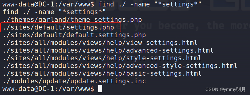 2.find ymmy -exec '/bin/bash' \;:这个命令尝试在 ymmy 目录下执行 /bin/bash 命令。然后,使用了 id 命令来查看当前用户的身份信息,结果显示您是以 www-data 用户身份执行的