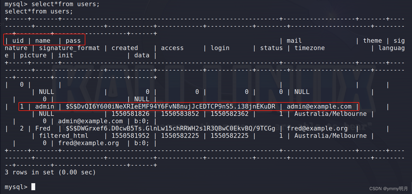 表中用户名的密码是加密的,数据库大部分加密方式是cmd5加密方式