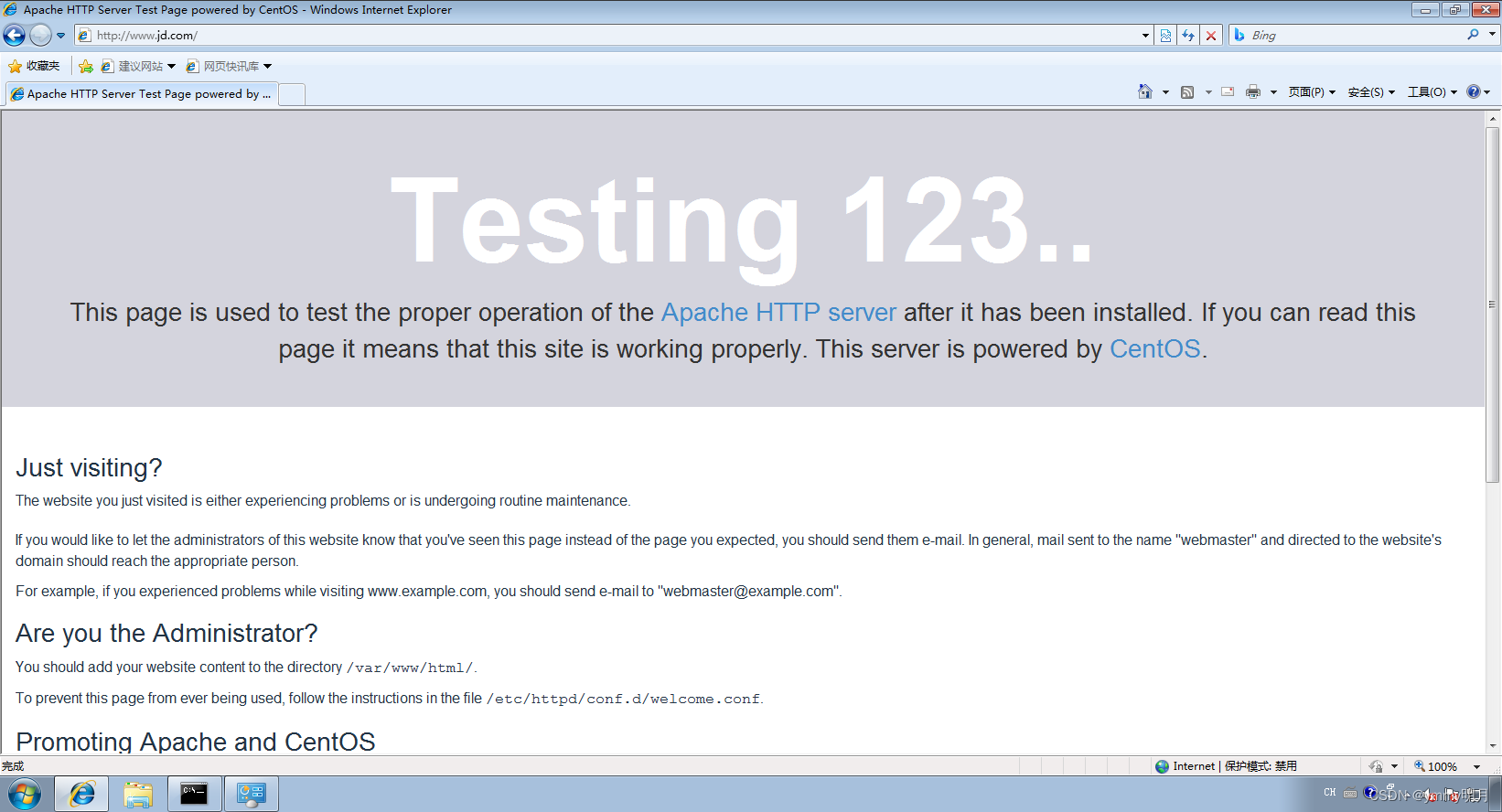 实现在客户机win7访问网站www.jd.com访问到的是centos的虚拟网站
