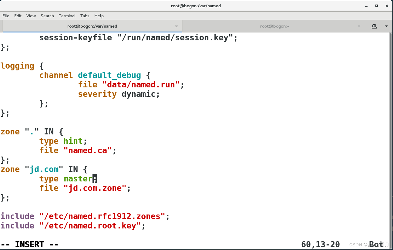 vim /etc/named.conf将55到58行复制