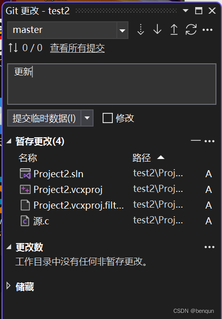 来到正题:使用vs2022中自带的git工具将代码提交到gitee上