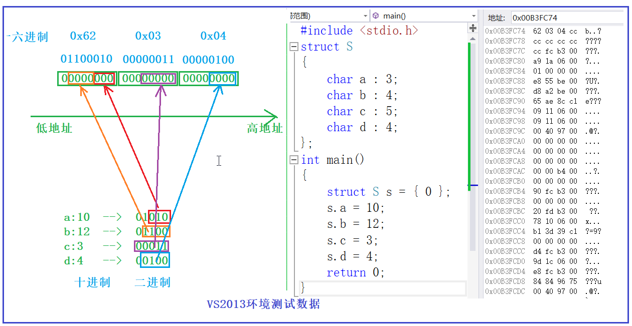 位段的⼏个成员共有同⼀个字节,这样有些成员的起始位置并不是某个字节的起始位置,那么这些位 置处是没有地址的。内存中每个字节分配⼀个地址,⼀个字节内部的bit位是没有地址的。 所以不能对位段的成员使⽤&操作符,这样就不能使⽤scanf直接给位段的成员输⼊值,只能是先输⼊ 放在⼀个变量中,然后赋值给位段的成员。