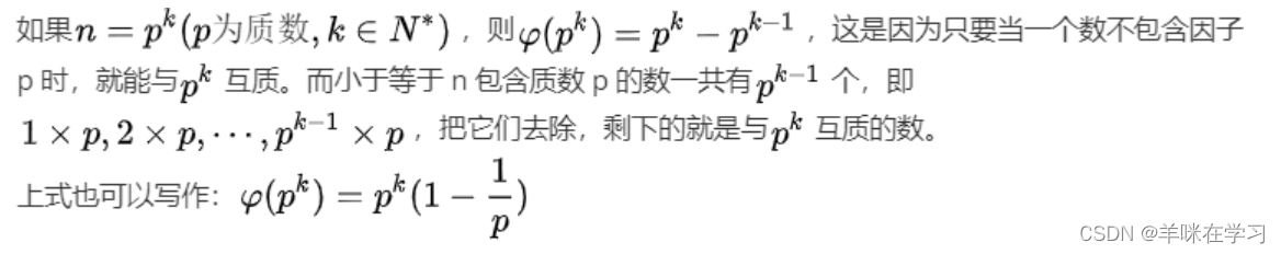 对于素数n,φ(n)=n−1,因为质数与小于它的每一个正整数都互质