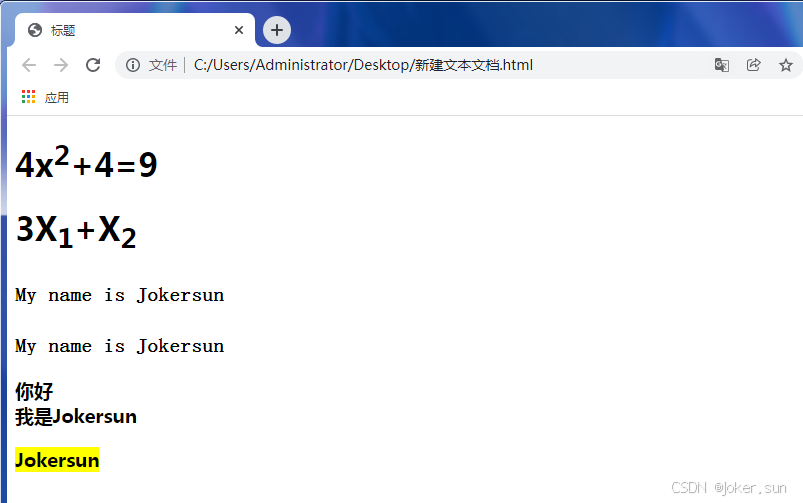 <h3><mark>Jokersun</mark><h3><!--标记文本-->