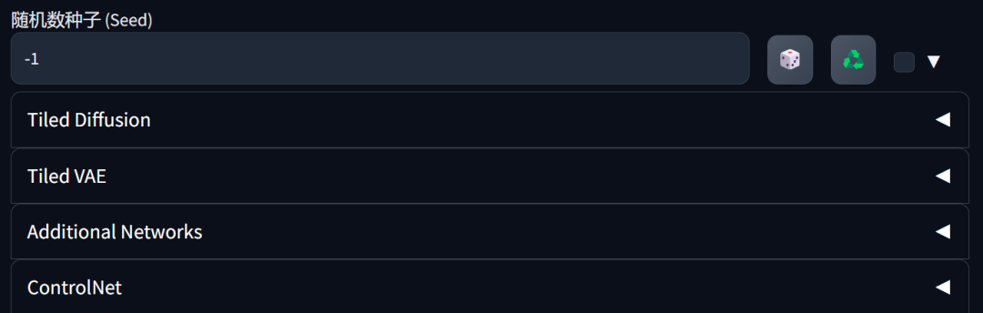 **⑧随机数种子:**相当于每张图片生成的编号,如果在同一编号下生成图片,那么这些图片会在最大程度上保持相似度。“骰子”按钮代表随机,点击“循环”按钮则会固定值,使用相同的值,可以降低图像的随机性。