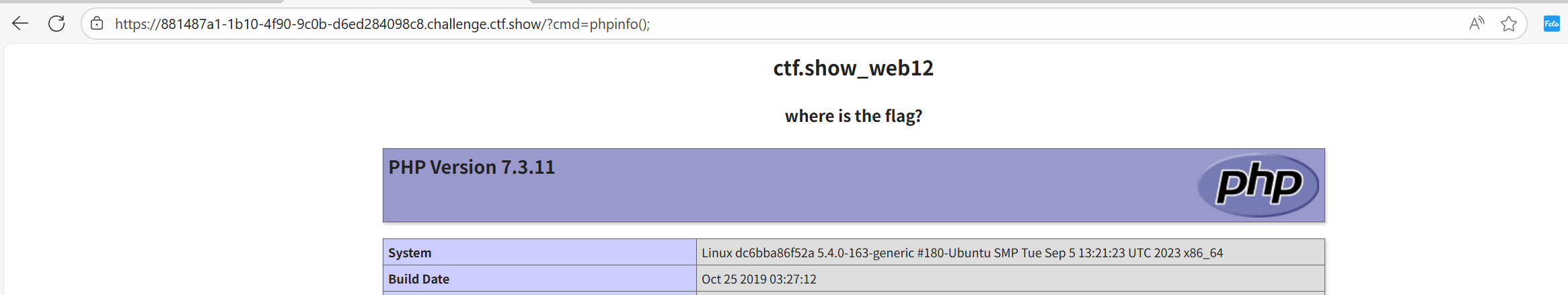 在网站上输入?cmd=phpinfo();有回显,猜测源码中应该为eval($_GET['cmd']);