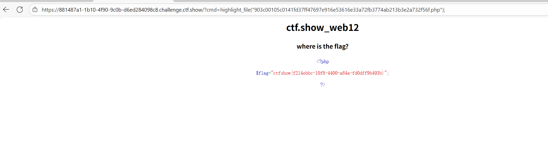 我们使用highlight_file()函数成功输出该php文件中的源码。