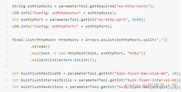 配置连接Elasticsearch的参数。从程序输入的ParameterTool中读取Elasticsearch相关的配置: