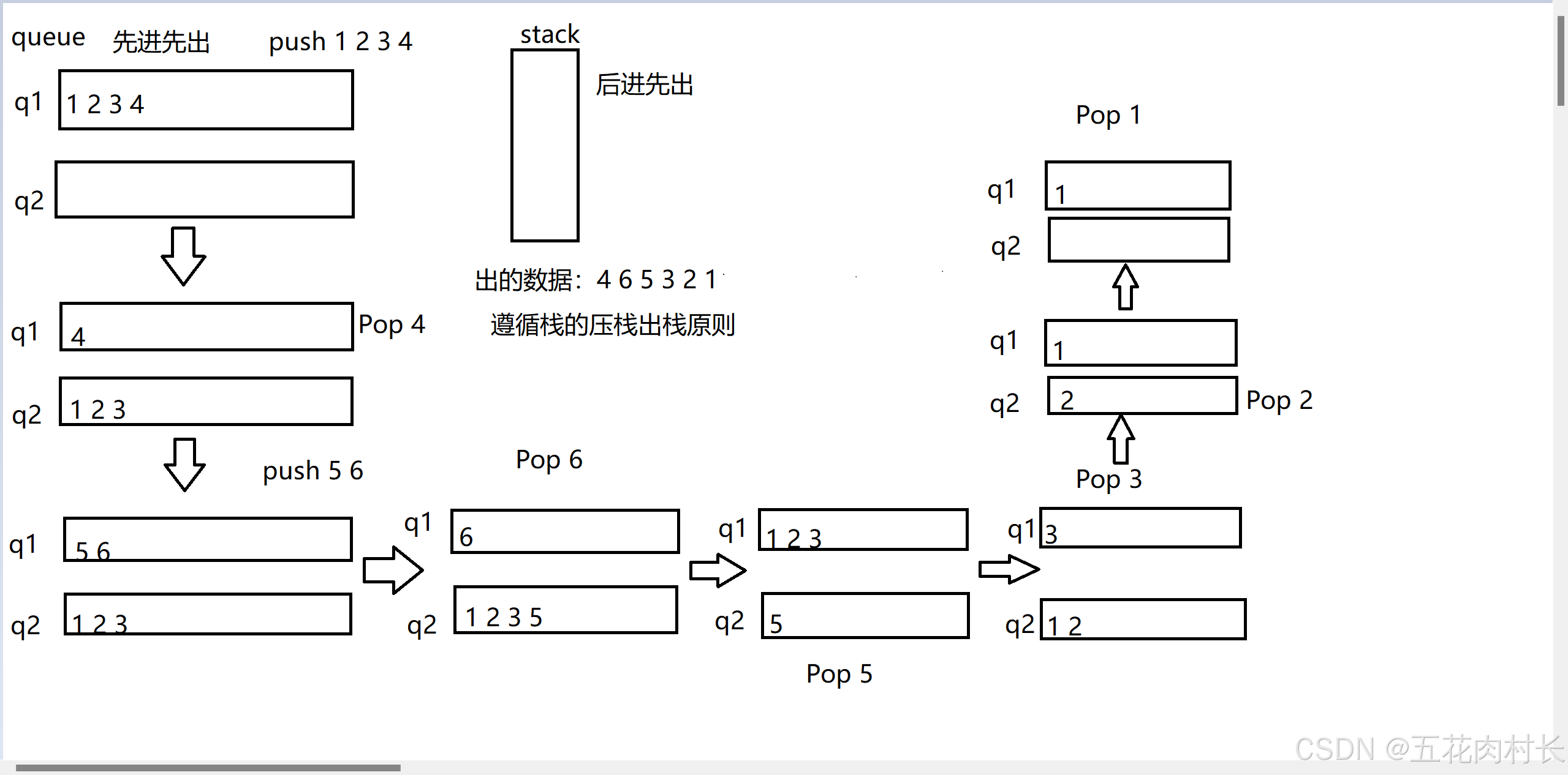 栈和队列的相互实现(C) 栈后进先出,队列先进先出,这里我们要用两个队列实现栈。LeetCode 225.用队列实现栈 (C语言,要自己造轮子,造个栈的结构出来)例如,队列先进数据是1234,然后出数据遵循栈的后进先出就是4321.