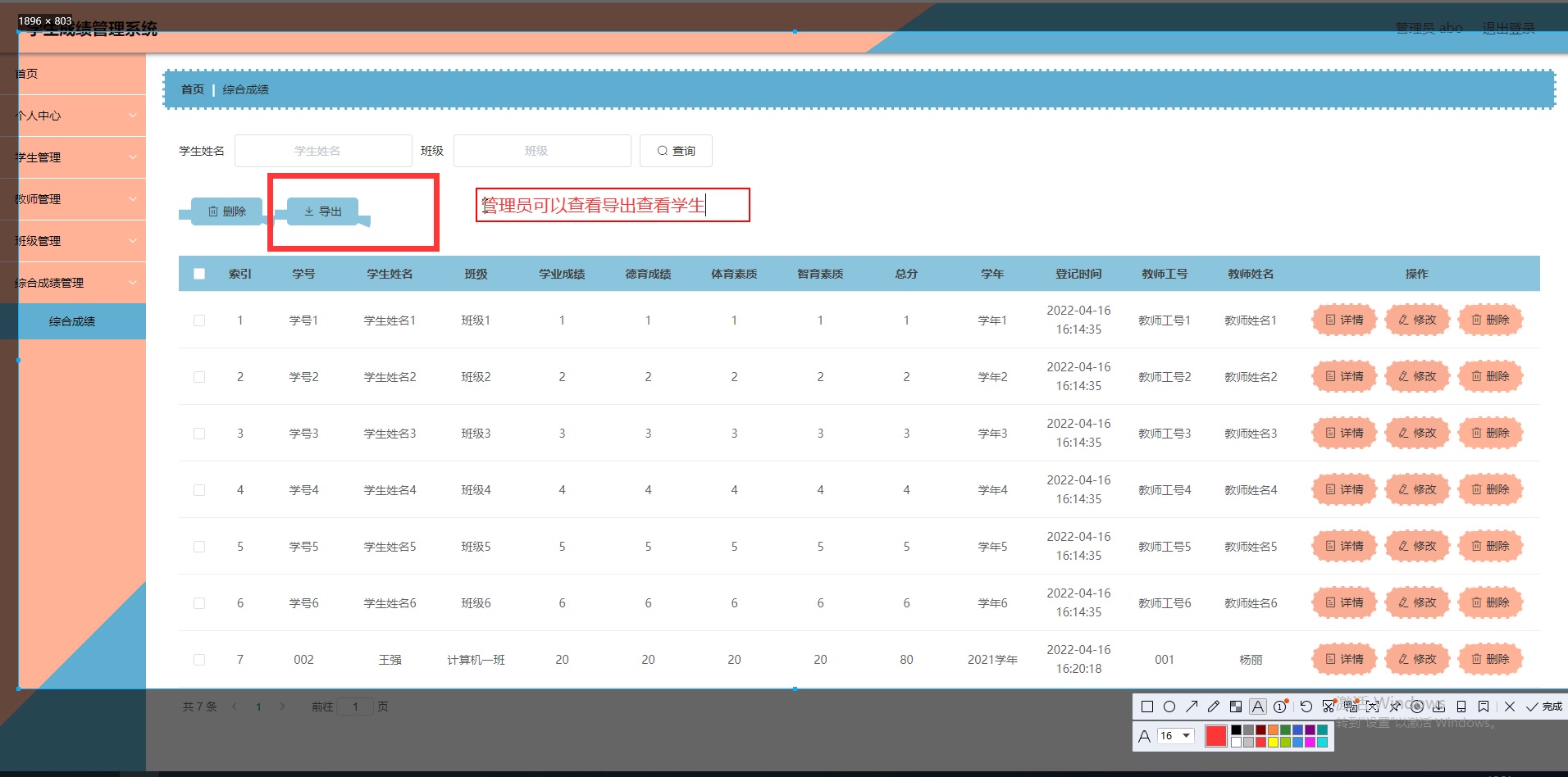 学生成绩、管理系统、成绩录入、成绩查询、成绩修改、成绩统计、学分计算、绩点计算、成绩排名、数据导出、数据备份、用户权限、成绩分析、教学评估、学生信息、课程安排、考试安排、成绩通知、家长查询、教师评价