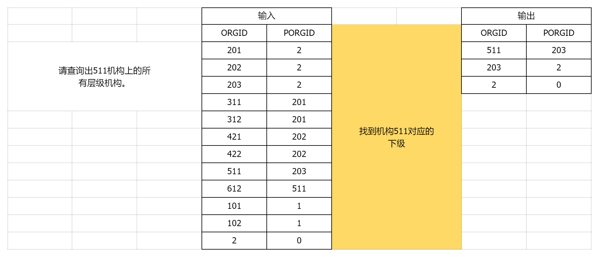 终止条件:当 PORGID 为根节点(如 000)或没有上级时停止。